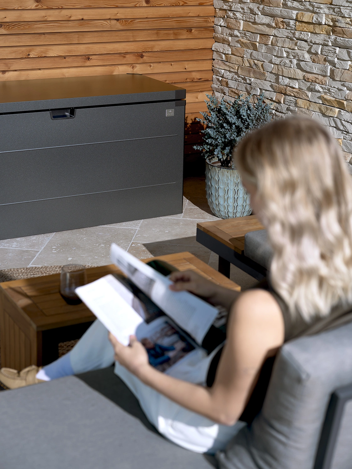 StyleBox är en underhållsfri och vattentät förvaringslåda från Biohort, perfekt för uteplatsen. Den ger praktiska förvaringsmöjligheter för dynor, solstolar, leksaker eller sportartiklar.