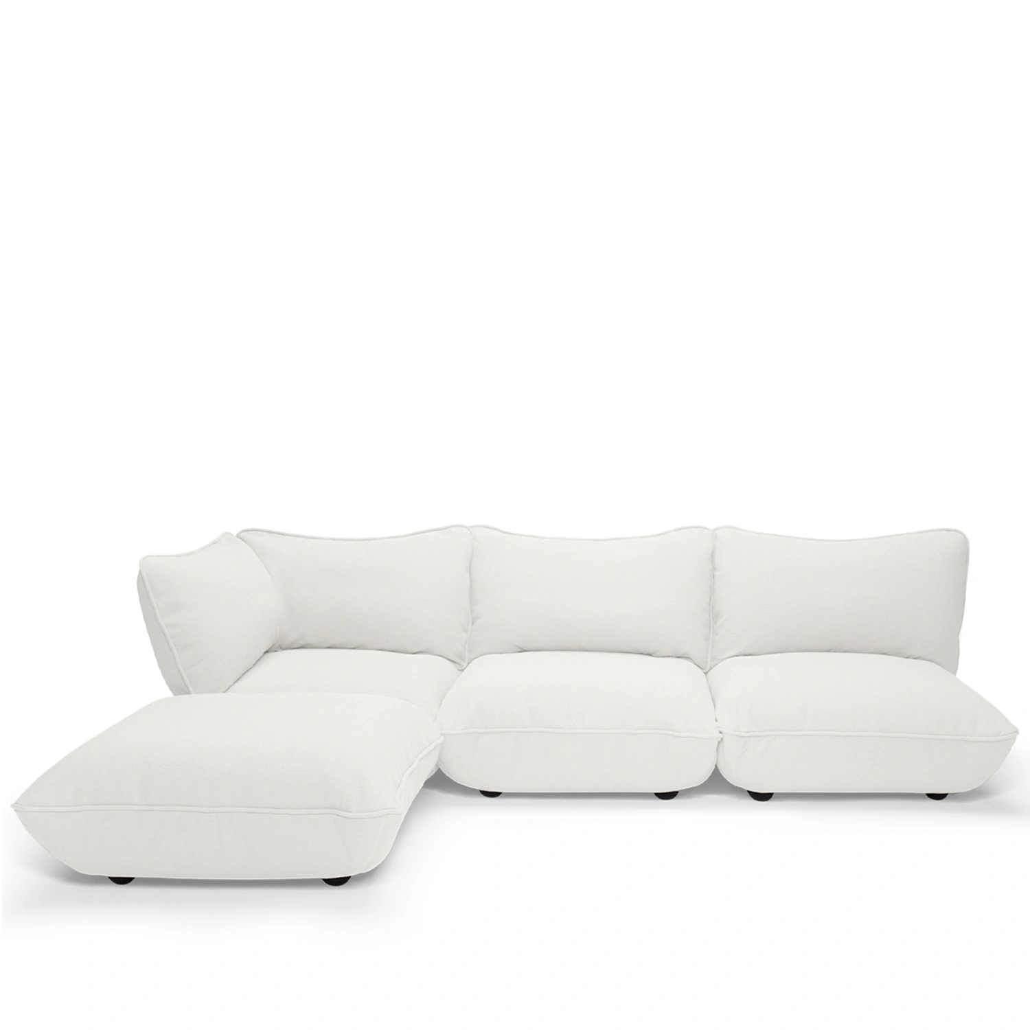 Sumo Divansoffa är mjuk och stark, tålig och stilfull. Och så rymlig att hela familjen får plats utan problem. Designen är inspirerad av en kuddkollektion, men sammansatt på ett smart sätt. Det gör det väldigt enkelt att utöka om du vill tänka större. Den här hörnsoffan vill bara en sak: att bli gammal tillsammans med dig. Och om du någon gång vill göra slut kan hela soffan plockas isär, och alla delar är återvinningsbara.