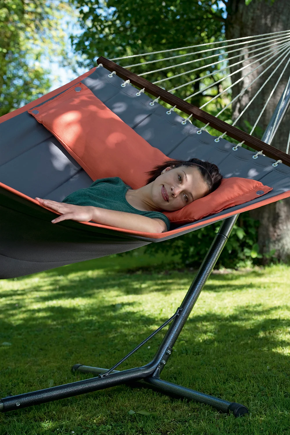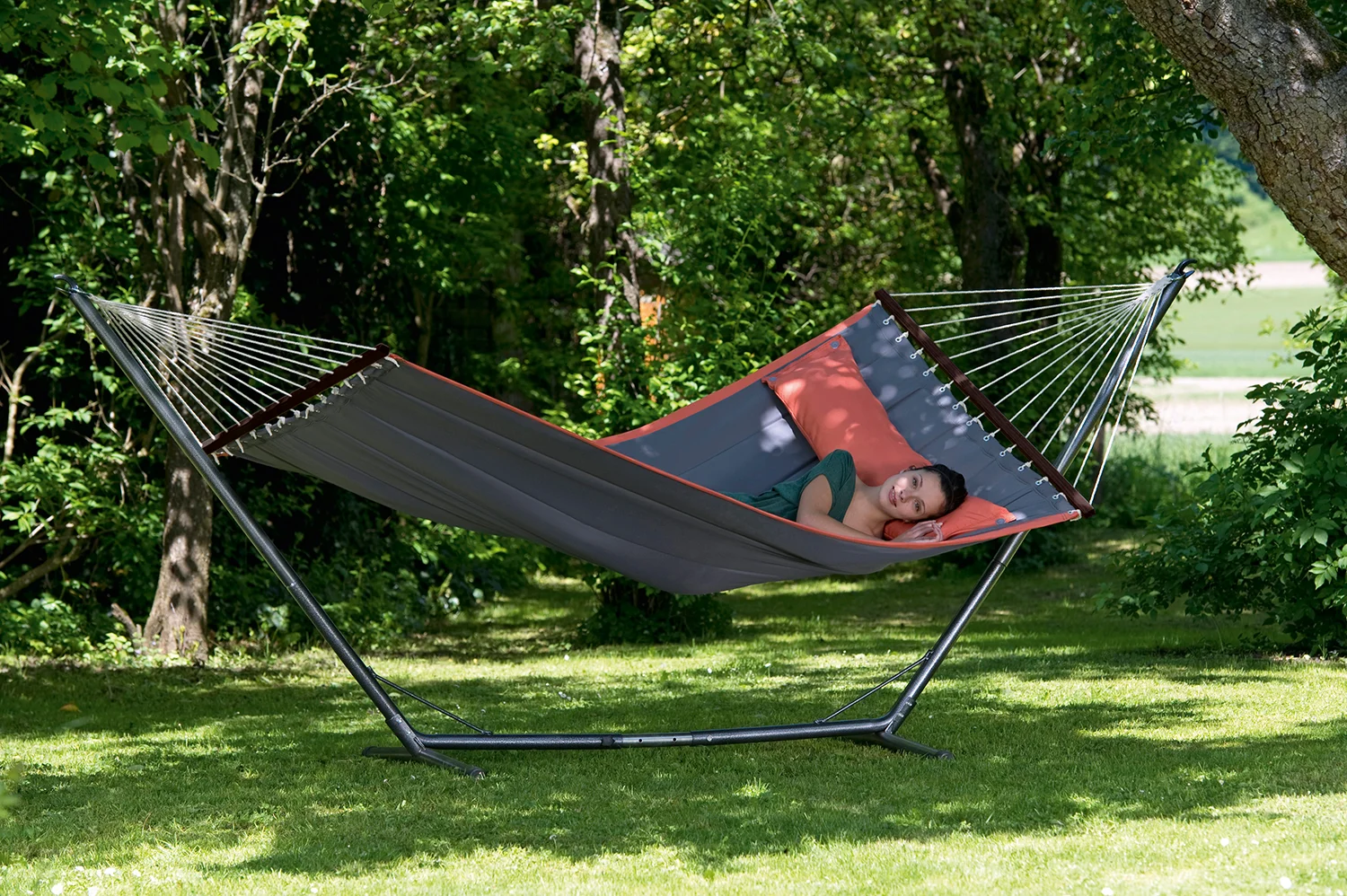 Sumo Grande är ett hängmattestativ med justerbar längd. Den är speciellt framtagen för att passa våra största hängmattor. Liten packvolym och lätt att montera utan verktyg. Amazonas har utvecklat en speciell beläggning för sina två stativ, Sumo Grande och Sumo Rockstone. Det ser ut som granit och på grund av dess struktur är den mer motståndskraftig mot repor än vanlig pulverlack.