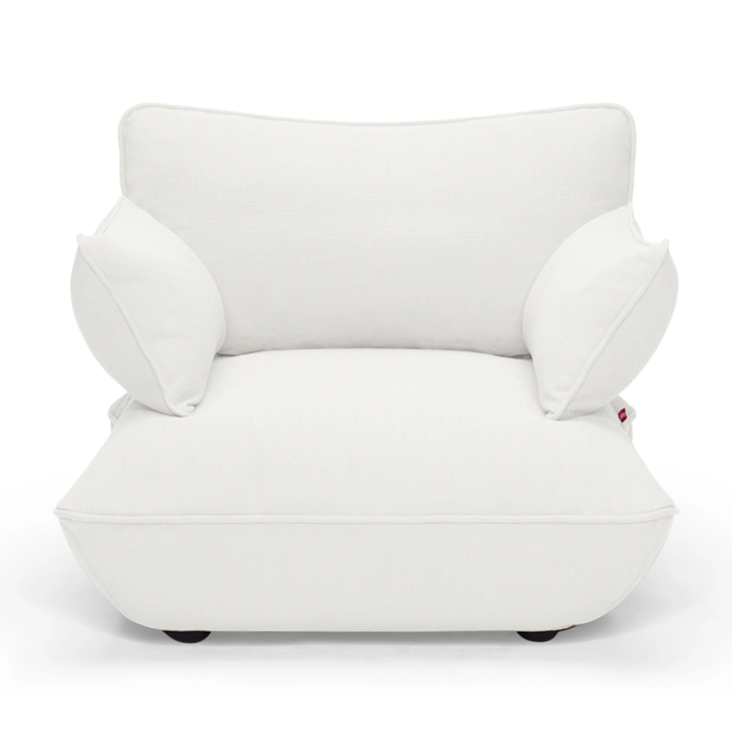 Den modulära, cirkulära Sumo Loveseat är mjuk och stark, tålig och stilfull. Väldigt generös också, vilket omedelbart gör designen ikonisk. Metallramen gör den väldigt robust och kuddarna av återvunnet skum håller formen i åratal.