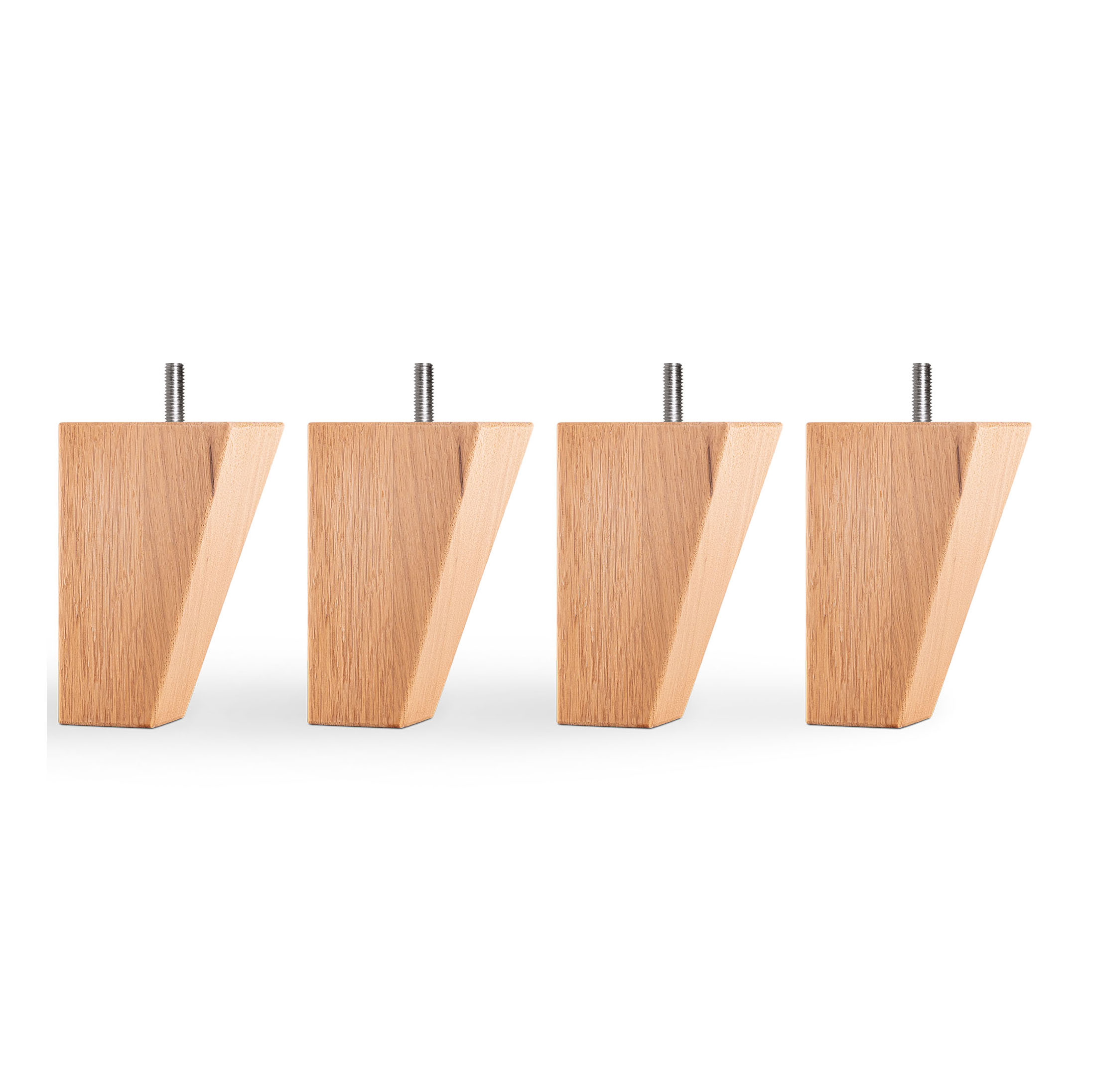 Svängda, fyrkantiga träben 12 cm, i natur ek från Hilding. Snyggt stilren design och ett lite nättare uttryck tack vare den eleganta formen. Ett sängben som passar många olika sovrum.
