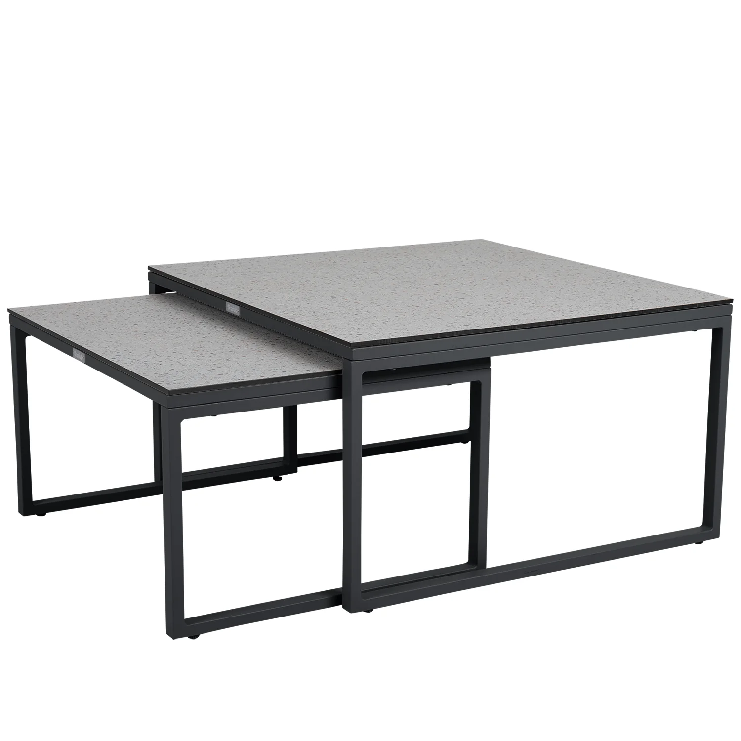 Bordsstativen är tillverkade i robust aluminium och designade för att användas i par. Det mindre bordet kan enkelt skjutas in under det större, vilket ger flexibilitet och sparar utrymme när det behövs. Denna funktion gör Talance soffbord perfekt för både stora och små uteplatser.