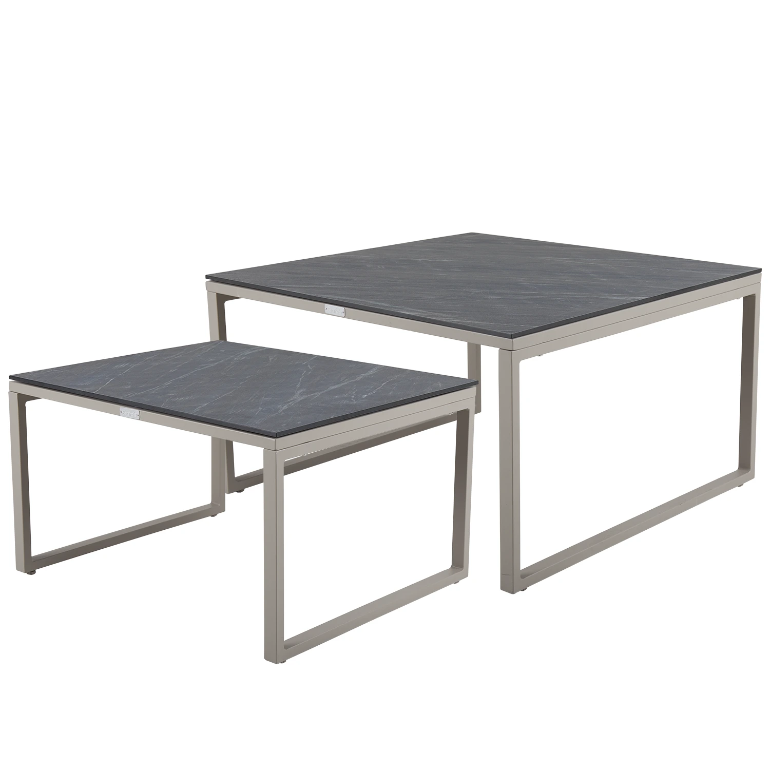 Bordsstativen är tillverkade i robust aluminium och designade för att användas i par. Det mindre bordet kan enkelt skjutas in under det större, vilket ger flexibilitet och sparar utrymme när det behövs. Denna funktion gör Talance soffbord perfekt för både stora och små uteplatser.