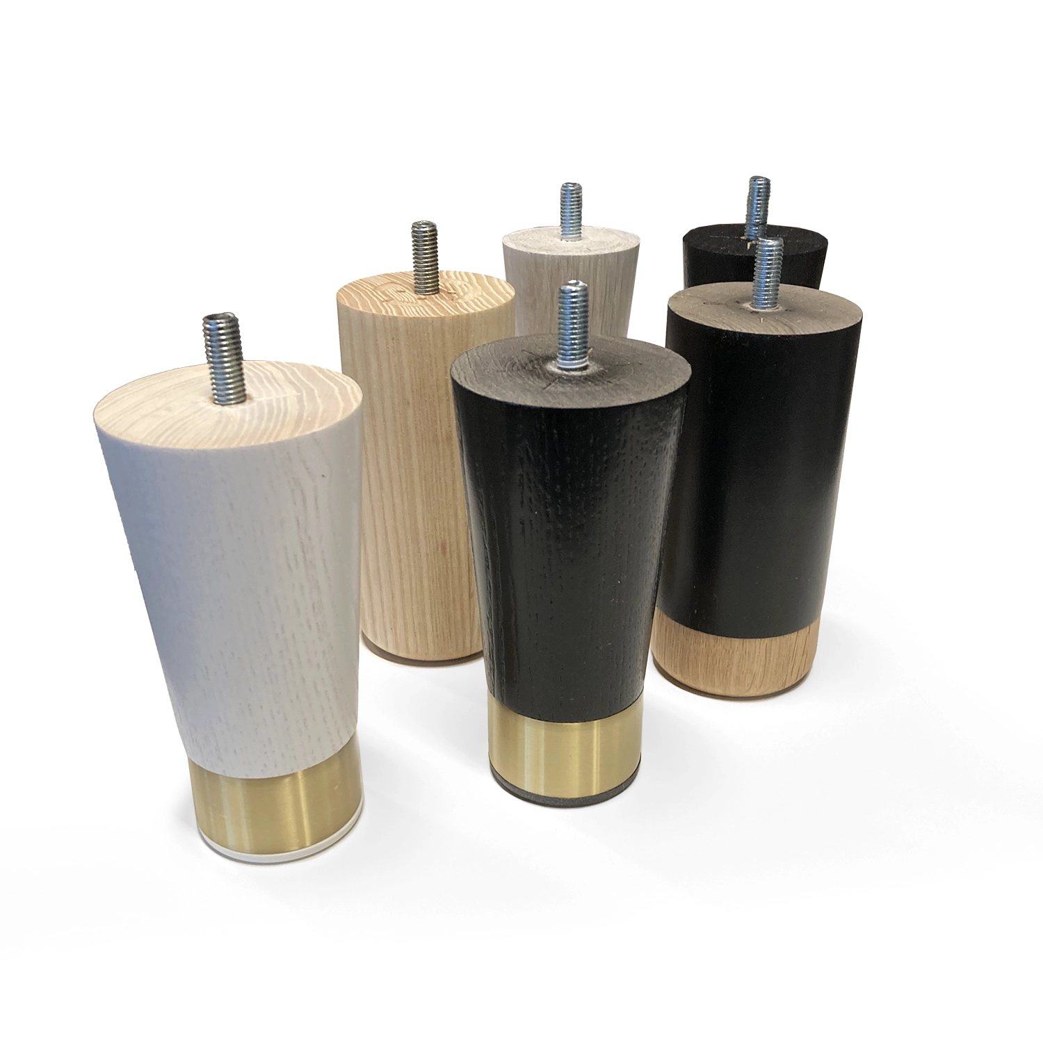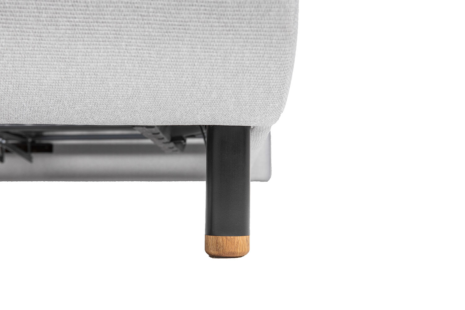Runda svarta sängben i askträ med ekfot från Tempur. Sängbenen har en standard M8 bult.