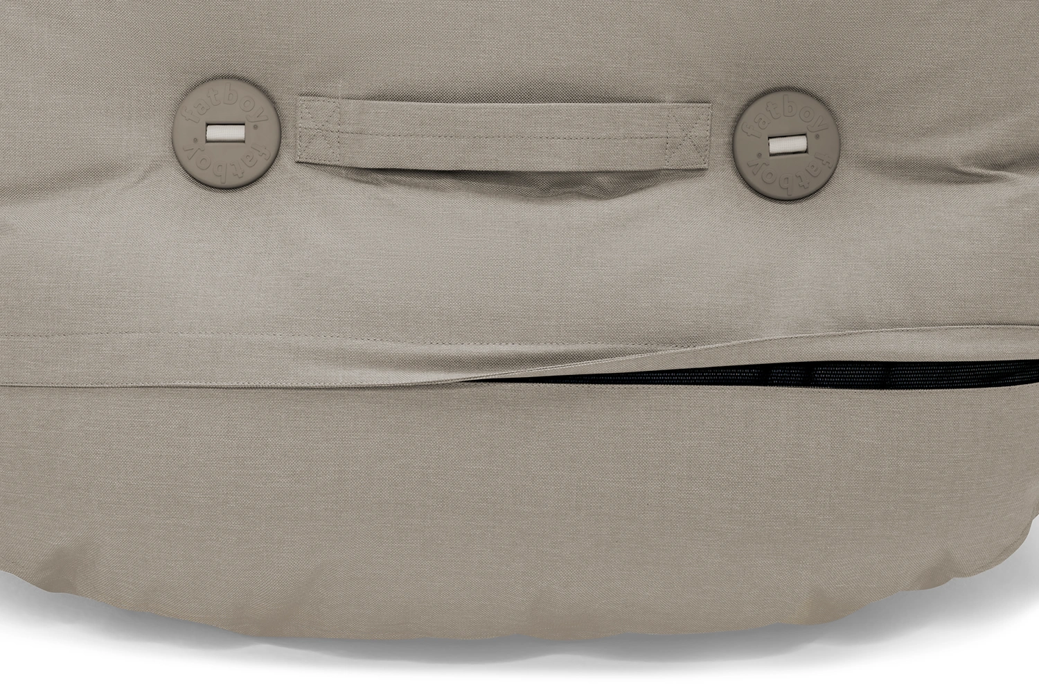 Trots den avslappnade designen är The BonBaron Outdoor byggd för utomhusbruk. Det robusta olefintyget är vatten- och smutsavvisande, den vattentäta dragkedjan och den andningsbara ytbehandlingen gör den perfekt för utomhusmiljöer. Ett dolt nät under de stora knapparna säkerställer ventilation, vilket håller stolen andningsbar även vid långvarig användning. En regnskur? Inga problem. Torka av den snabbt och sätt dig igen. Är det ihållande regn? Förvara den under tak på en torr yta. På så sätt håller sig din BonBaron Outdoor i toppform och är redo för nästa användning. För Fatboy är The BonBaron Outdoor den perfekta blandningen av nöje och funktionalitet.