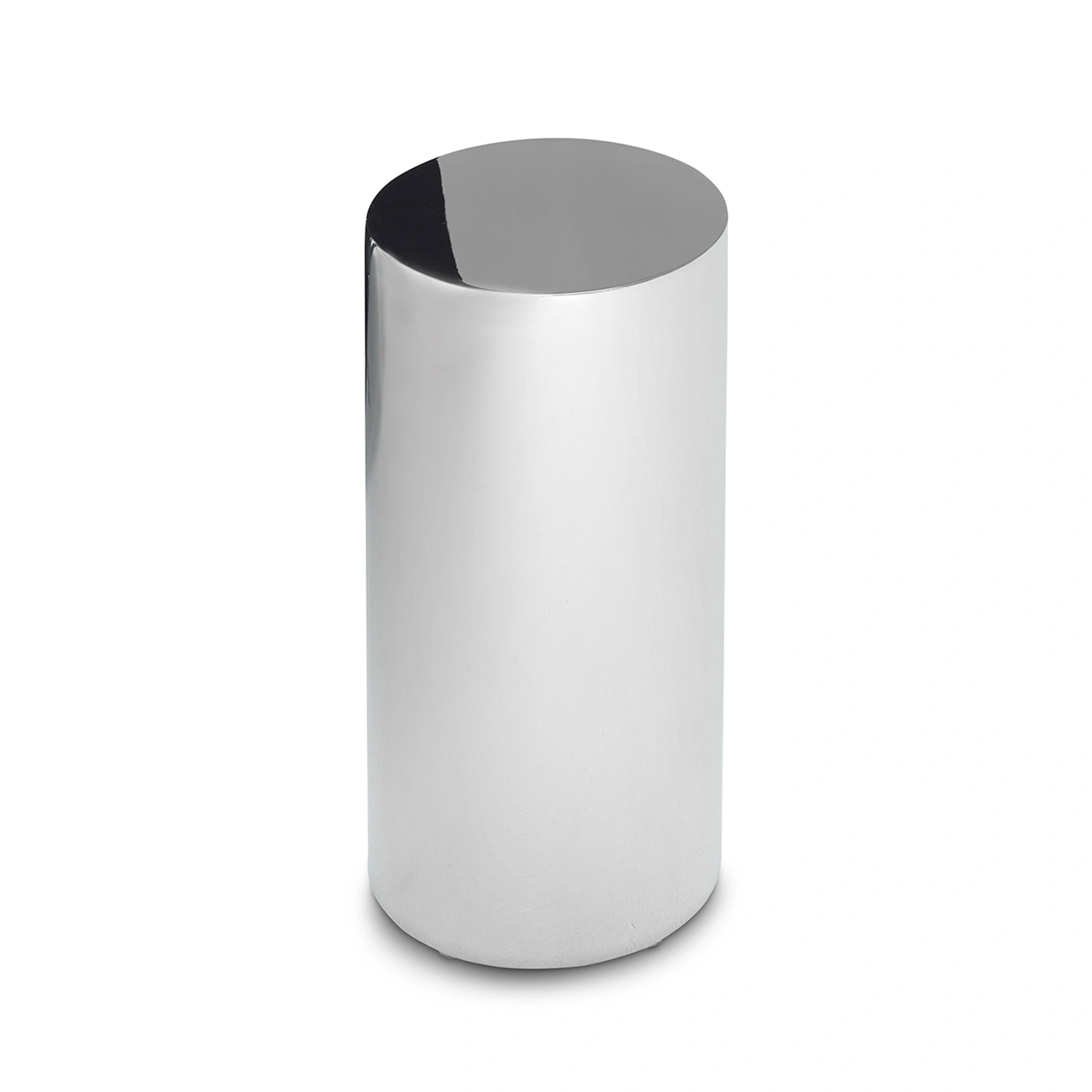Tin Drum är ett modernt sidobord med en rund, cylinderformad form i polerat rostfritt stål. Den blanka ytan reflekterar ljuset och ger bordet ett elegant uttryck som passar lika bra i vardagsrummet som i hallen eller sovrummet. Den enkla formen gör det lätt att kombinera med olika inredningsstilar – från stramt minimalistiskt till mer färgstarkt och personligt.