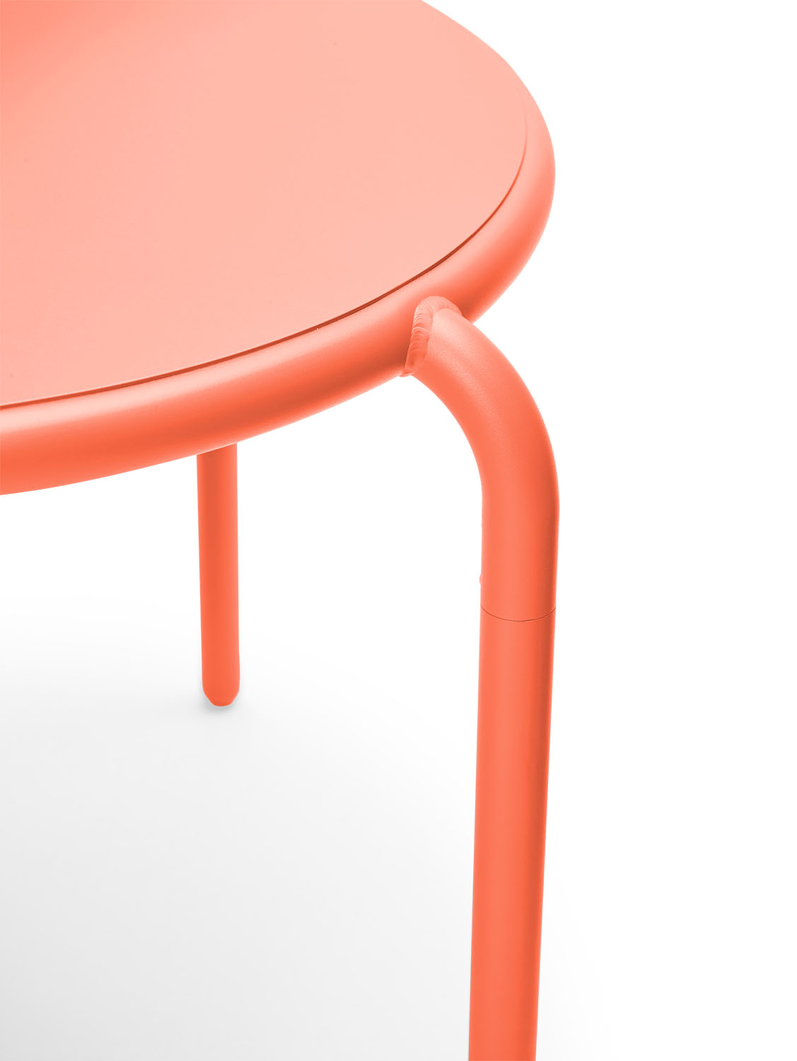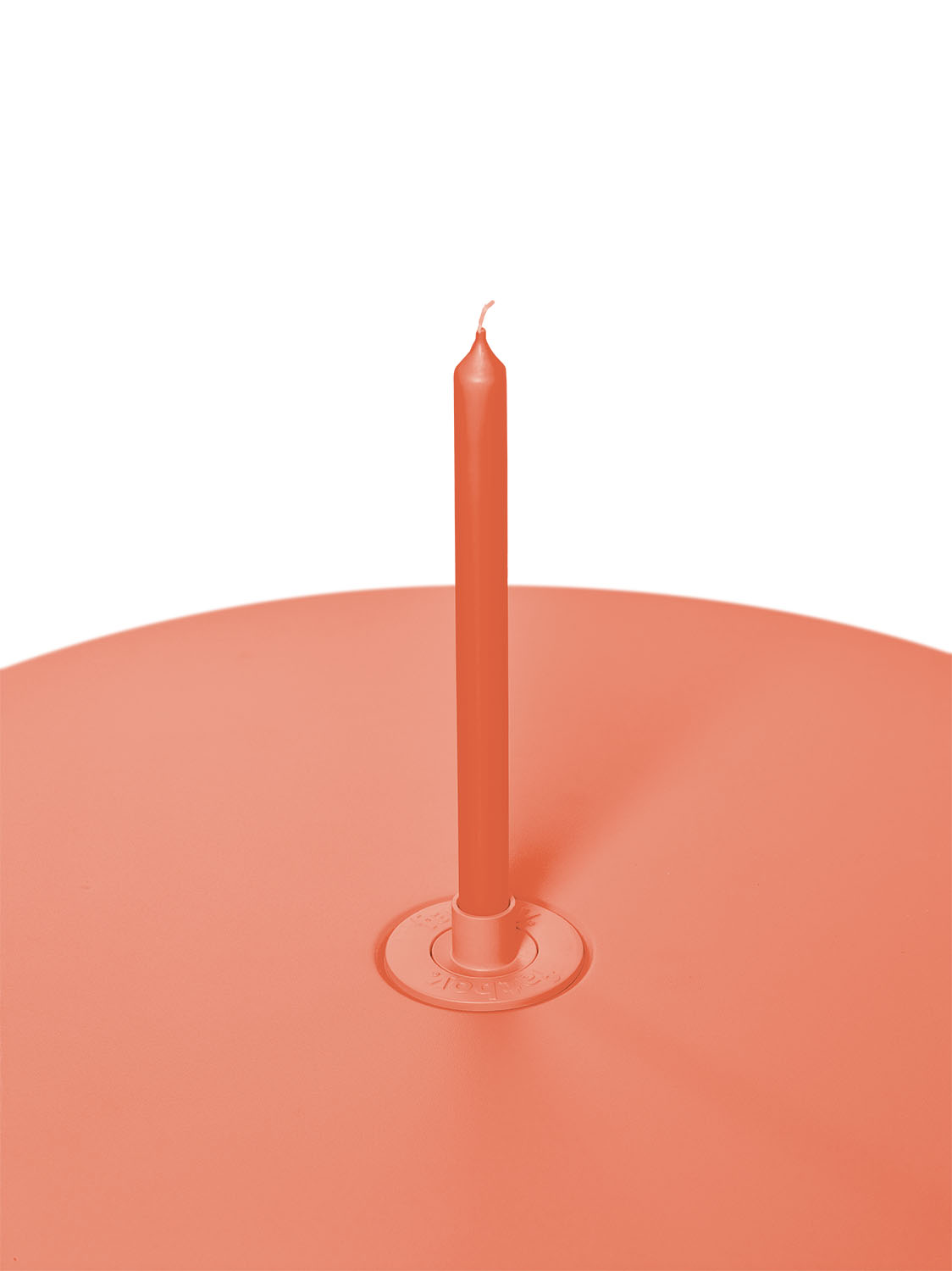 Med det runda Toní-bistrobordet kan du skapa det perfekta trädgårds- eller terrassarrangemanget på kort tid. Den lätta aluminiumen gör det hopfällbara trädgårdsbordet lätt att flytta eller stapla. Toní Bistreau har också en praktisk två-i-ett-funktion. Hålet i mitten är Ø41 mm och kan fungera som en parasollhållare under dagen och som en ljusstake på natten. Hemligheten? Täckplattans baksida innehåller en ljushållare som kan hålla antingen ett enkelt ljus eller den tillhörande Toníljusstaken med tre armar. På detta sätt kan du koppla av utanför hela dagen och hela natten.