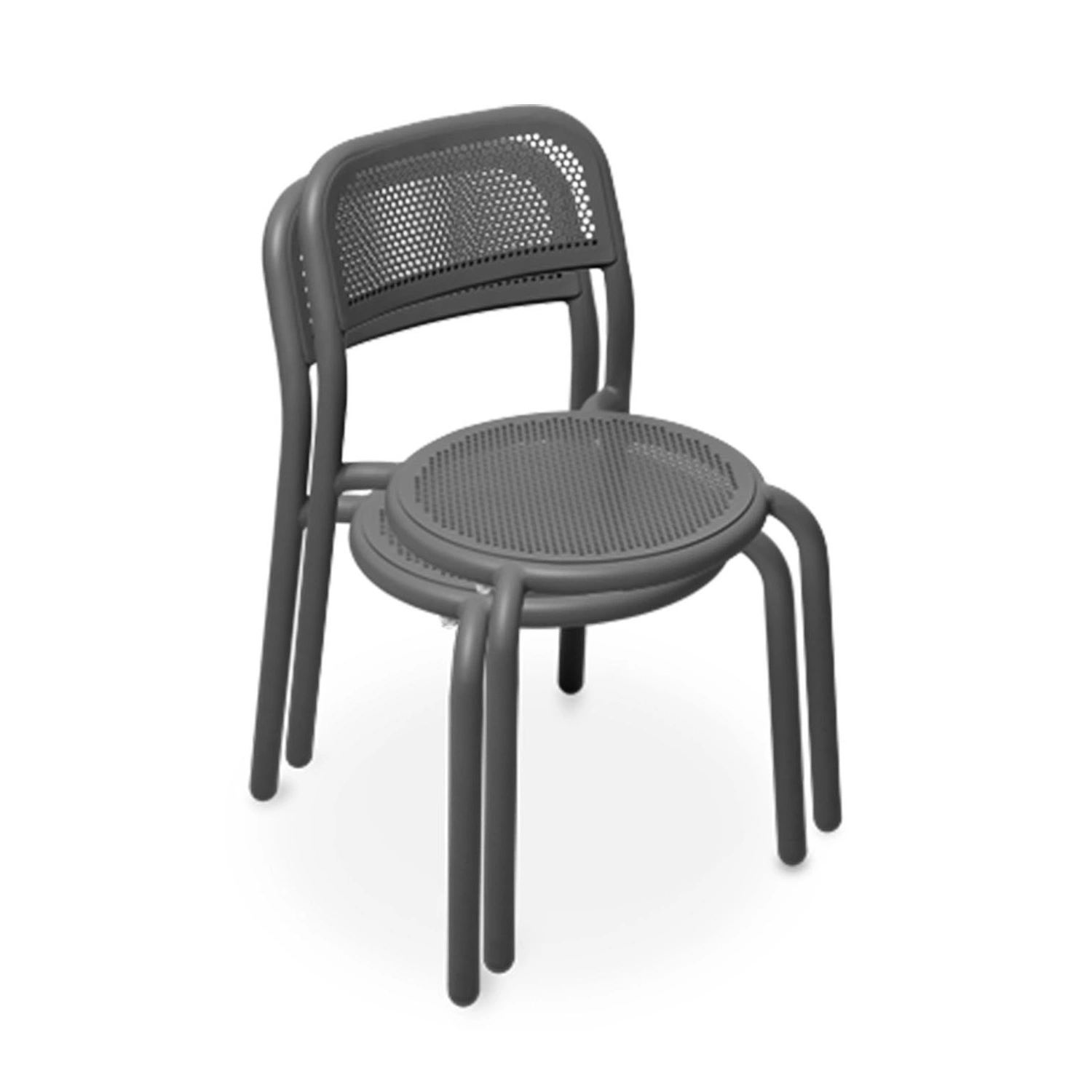 Medlemmar av Toní-familjen är stenhårda, korrosionsbeständiga och färgsnåla. Toní-stolarna kan enkelt staplas eller skjutas på plats. en lätta aluminiumramen gör stolen lätt att flytta. Du kan också stapla upp till fyra Toní-stolar i varann! Perfekt att snabbt skapa ett nytt terrassarrangemang eller om du slutligen har fler gäster till din grill.