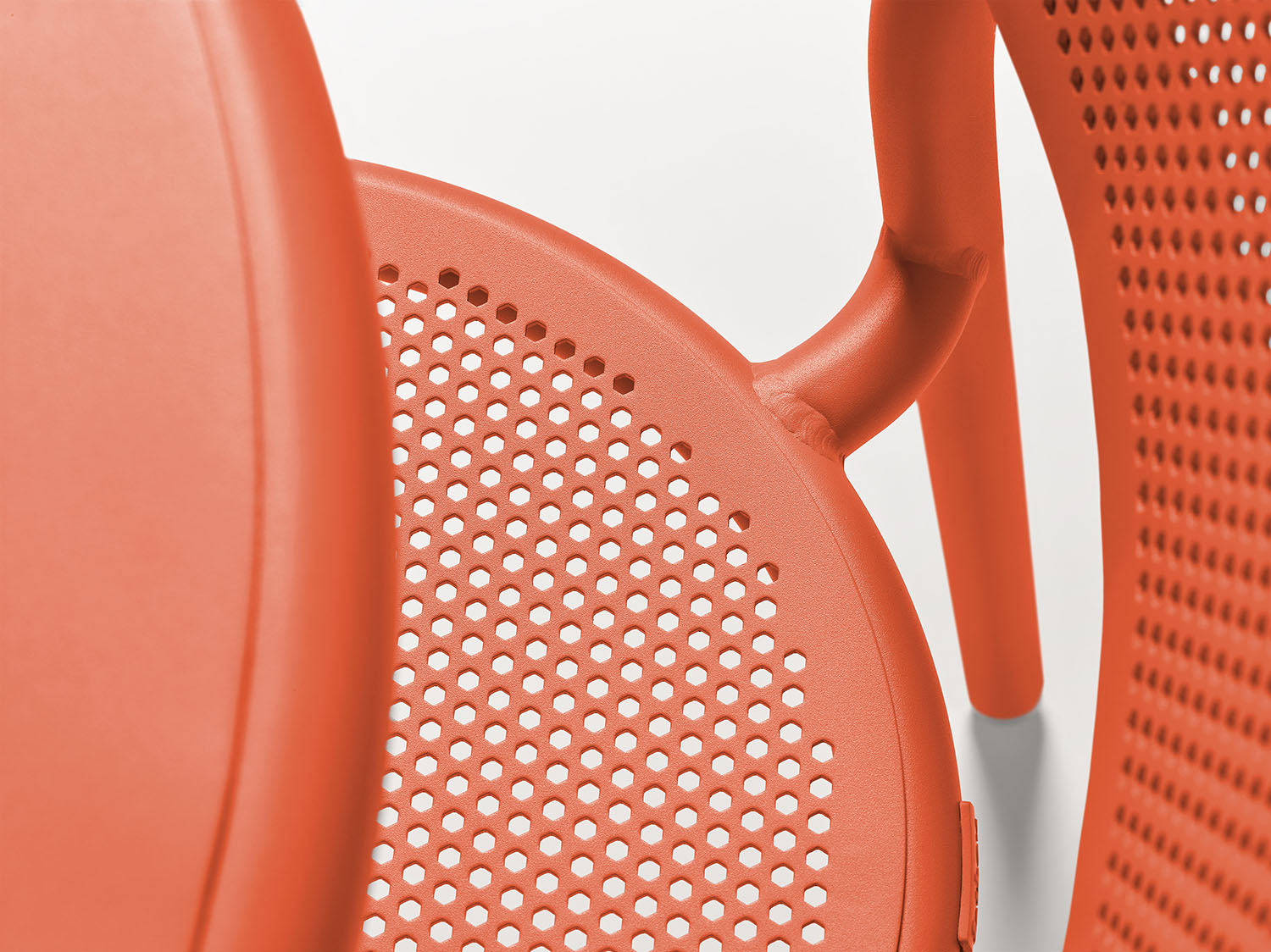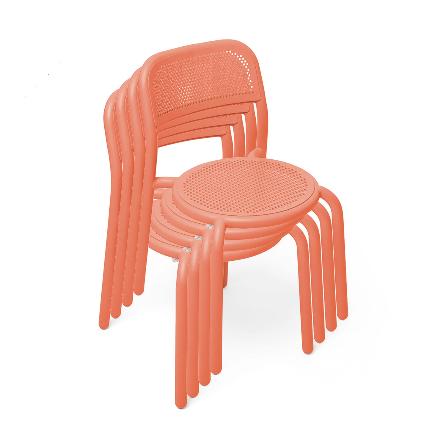 Medlemmar av Toní-familjen är stenhårda, korrosionsbeständiga och färgsnåla. Toní-stolarna kan enkelt staplas eller skjutas på plats. en lätta aluminiumramen gör stolen lätt att flytta. Du kan också stapla upp till fyra Toní-stolar i varann! Perfekt att snabbt skapa ett nytt terrassarrangemang eller om du slutligen har fler gäster till din grill.