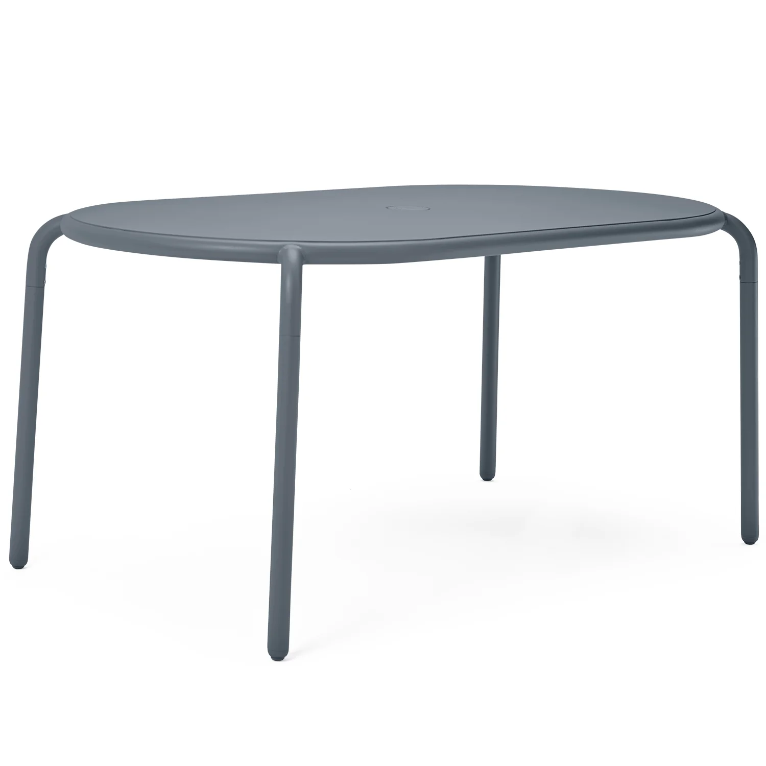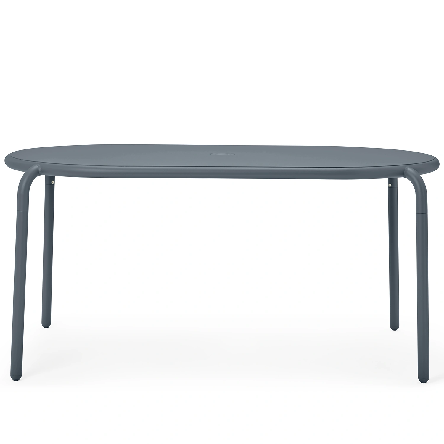 Vill du ha en avslappnad middag utomhus med din familj och vänner? Matbordet Toní Tavolo kan hjälpa dig med det. Aluminiummaterialet gör bordet fint och lätt, så att du enkelt kan flytta det. Hålet i mitten är Ø41 mm och fungerar som en parasollhållare under dagen och kan även användas för den trearmade Toní-ljusstaken på natten. De justerbara benen låter dig ändra höjden efter önskemål.