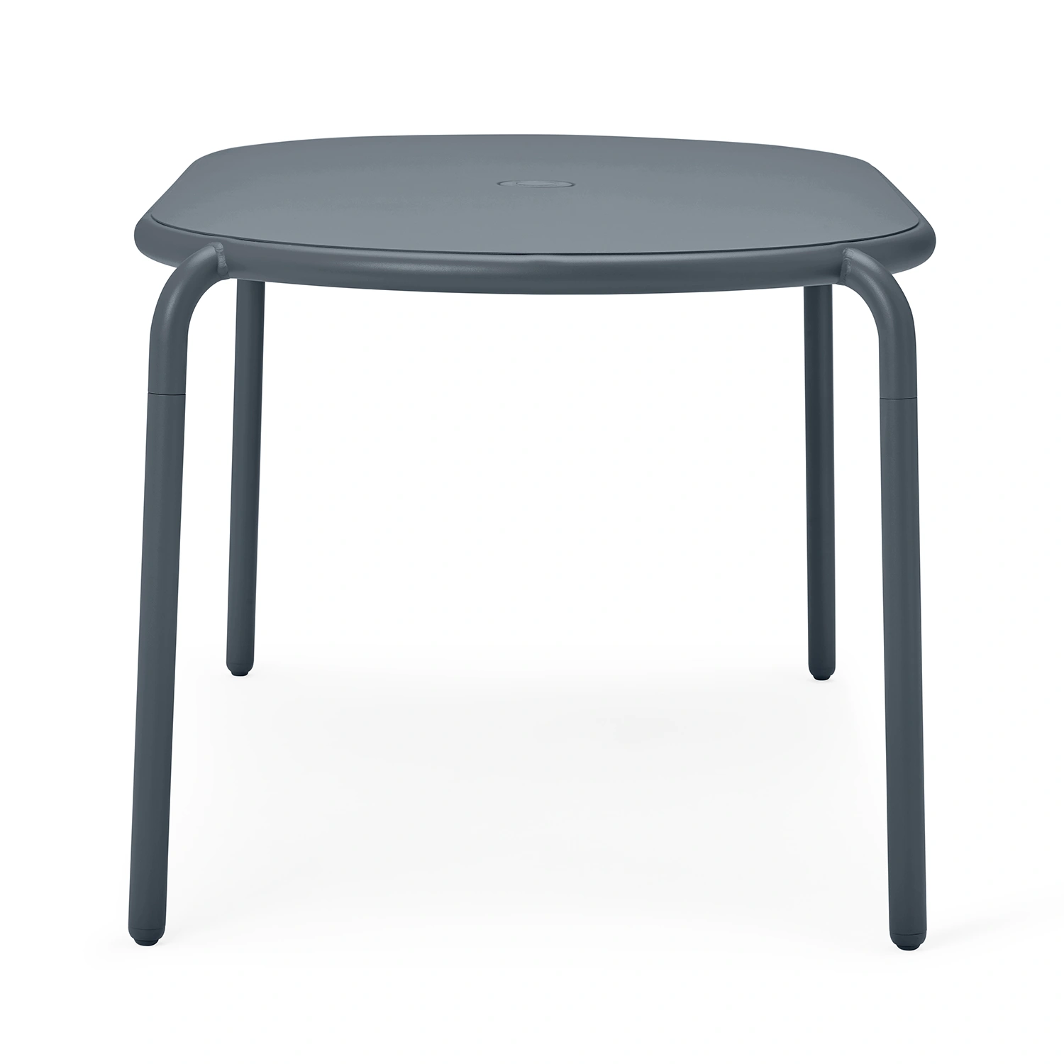 Vill du ha en avslappnad middag utomhus med din familj och vänner? Matbordet Toní Tavolo kan hjälpa dig med det. Aluminiummaterialet gör bordet fint och lätt, så att du enkelt kan flytta det. Hålet i mitten är Ø41 mm och fungerar som en parasollhållare under dagen och kan även användas för den trearmade Toní-ljusstaken på natten. De justerbara benen låter dig ändra höjden efter önskemål.