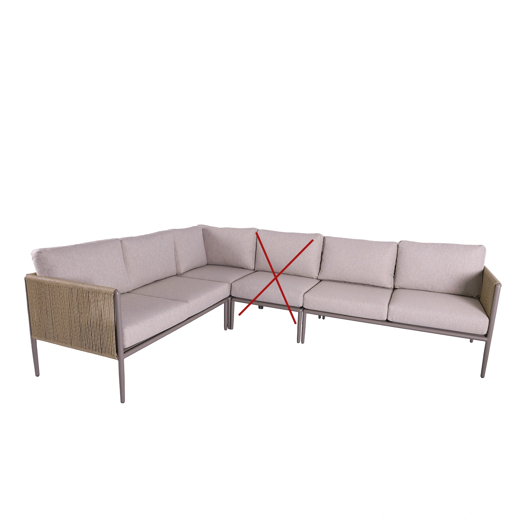 Toulouse hörnsoffa i aluminium och konstrotting. Sits och rygg är stoppade i quick-dry foam som är ett snabbtorkande stoppningsmaterial perfekt för utemöbler. Efter en regnskur torkar möbeln mycket snabbt.