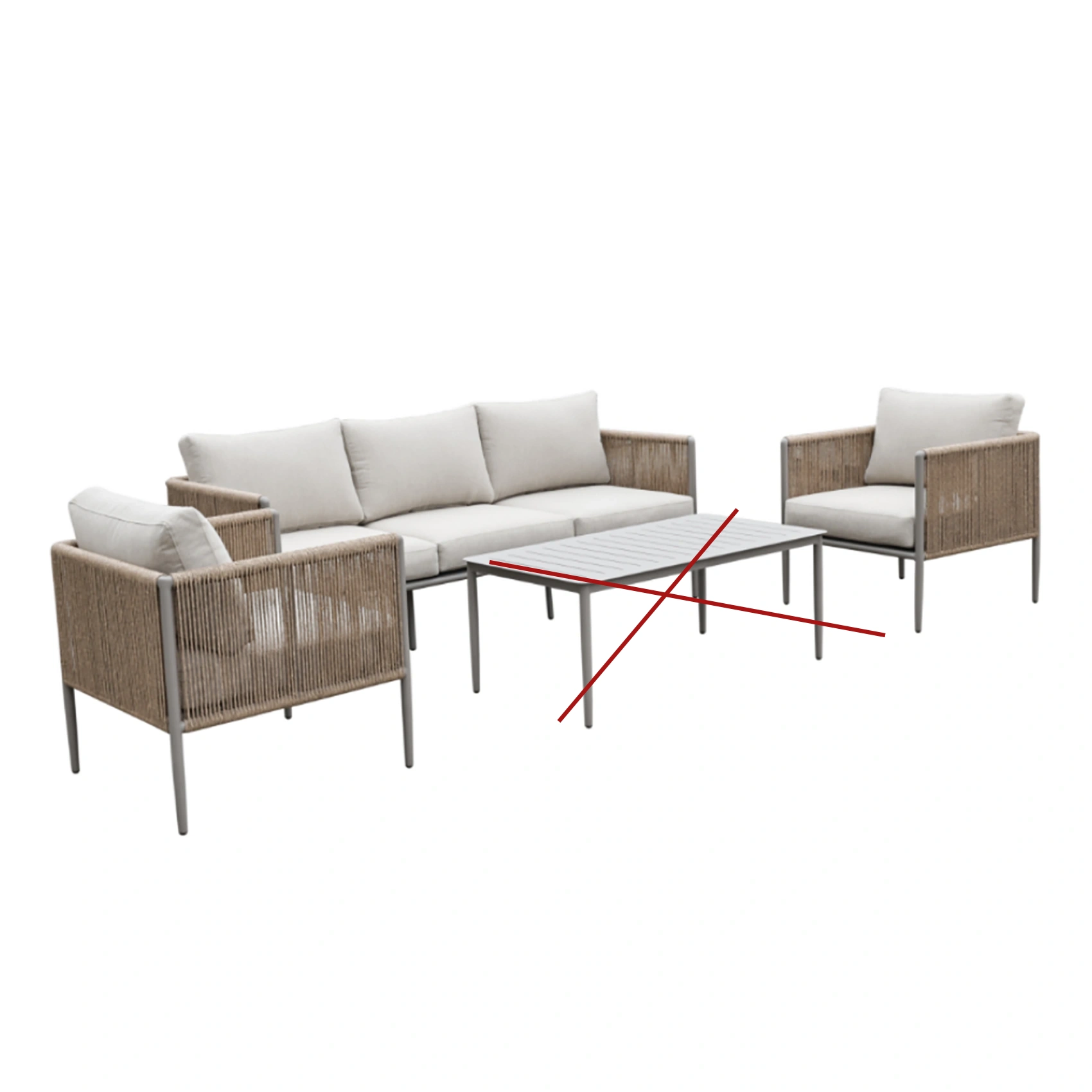 Gruppen består av 1 soffa och två fåtöljer. Soffbord ingår ej!
