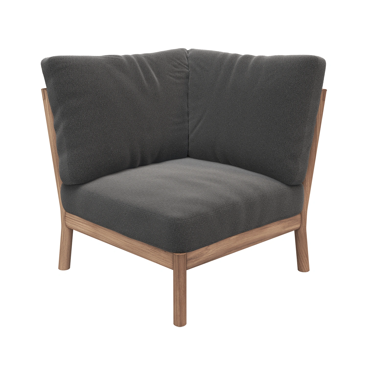 Tradition hörnmodul tillverkad i teak med dynor i färgen charcoal. Tradition hörnmodul utökar loungegruppen för utomhusbruk med en generös och bekväm vadderad hörnsits. Tillverkad i samma högkvalitativa material och med fokus på detaljer, lindas ryggstödet runt på två sidor och kan fästas säkert för att skapa en sömlös och stabil loungeupplevelse.