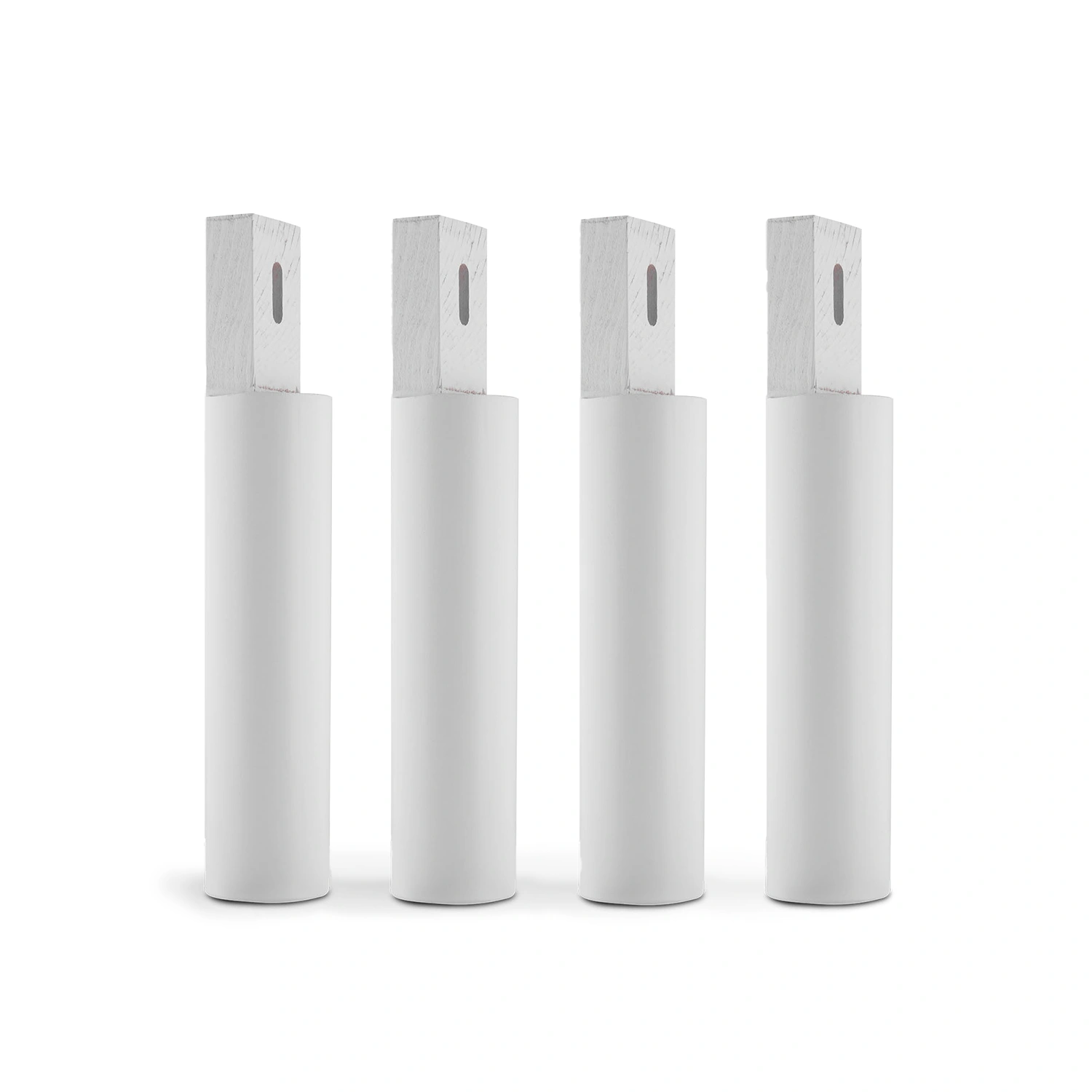 Massiva runda träben i vitlackerat trä från Hilding. Ett paket sängben innehåller fyra stycken sängben inklusive beslag för traditionell infästning. Dessa sängben användes företrädelsevis till ramsängar.
