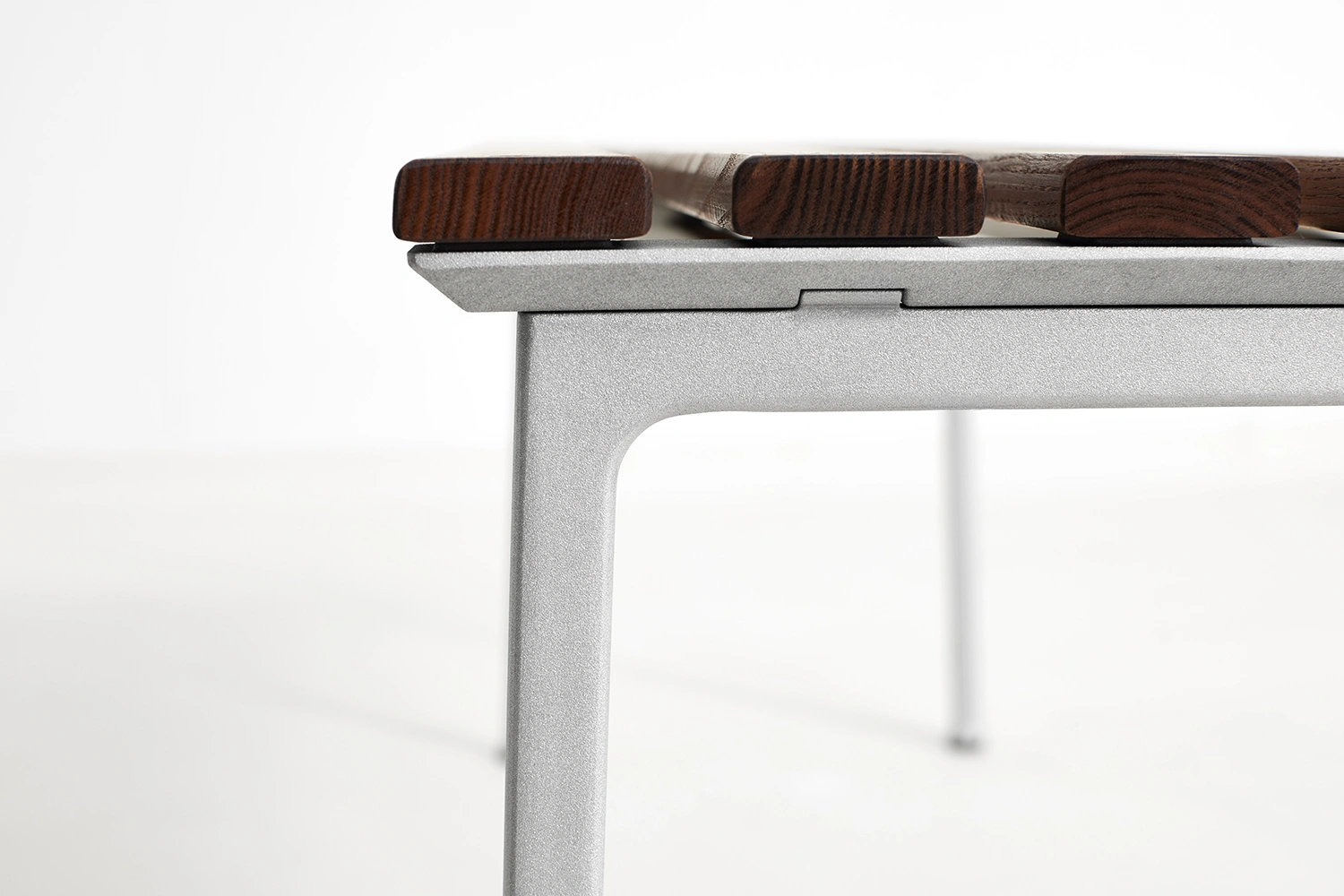 Traverse bänk med stomme i gjuten aluminium och ribbor i värmebehandlad ask.