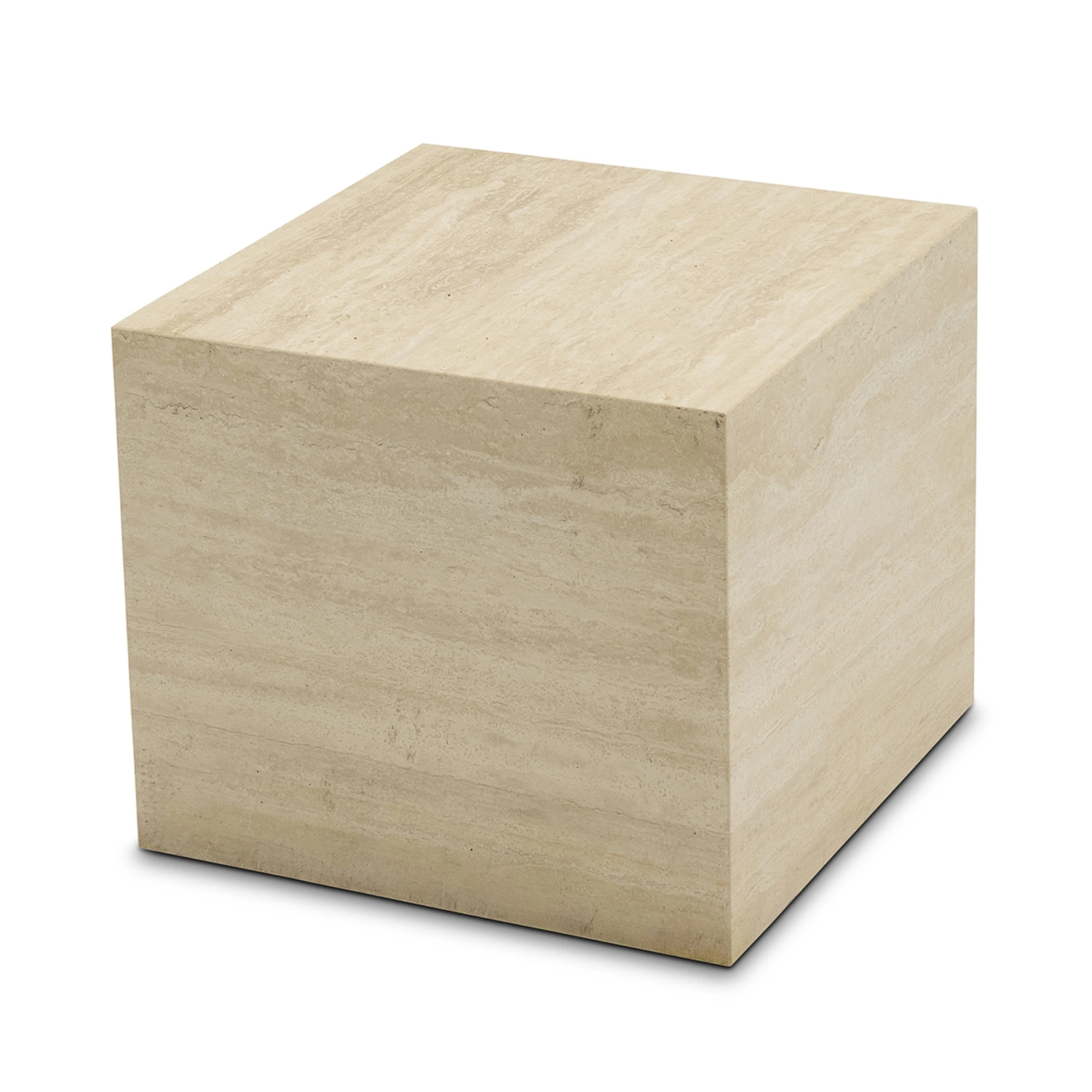 Travertina 40×40 cm är ett stilrent sidobord i kubisk form, tillverkat i travertin – en natursten som kännetecknas av sina mjuka, neutrala nyanser och unika ådring. Denna modell i måttet 40×40×H35 cm har en låg och stabil profil som gör den perfekt som soffbord, sidobord eller som en dekorativ detalj i moderna miljöer.