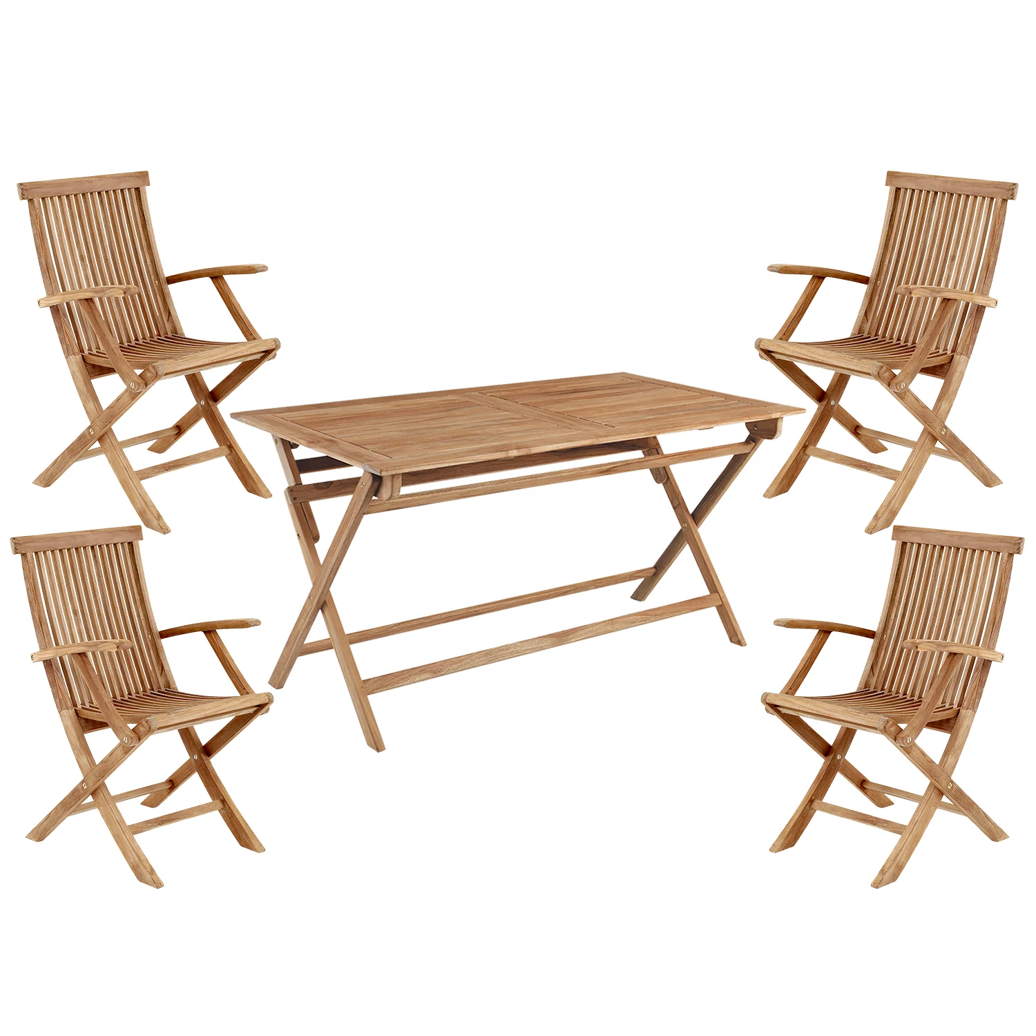 Turin karmstol, här med det det smidiga rektangulära Turinbordet. Finns även i runt utförande. Både bord och stolar är enkla att fälla ihop.