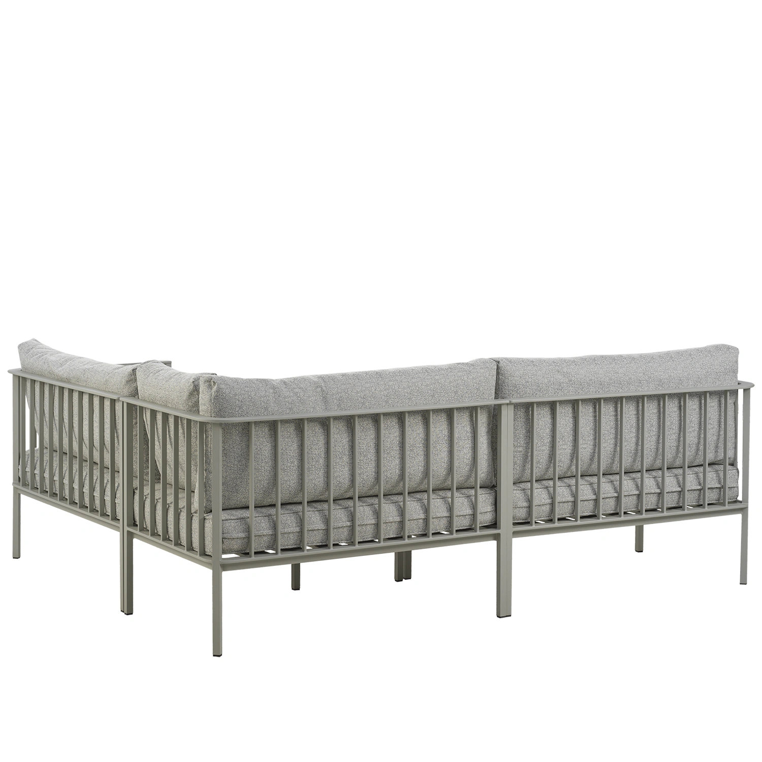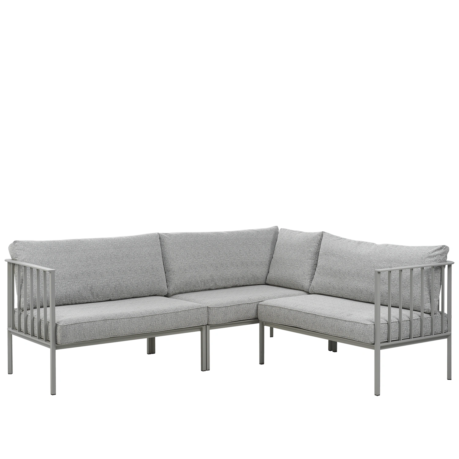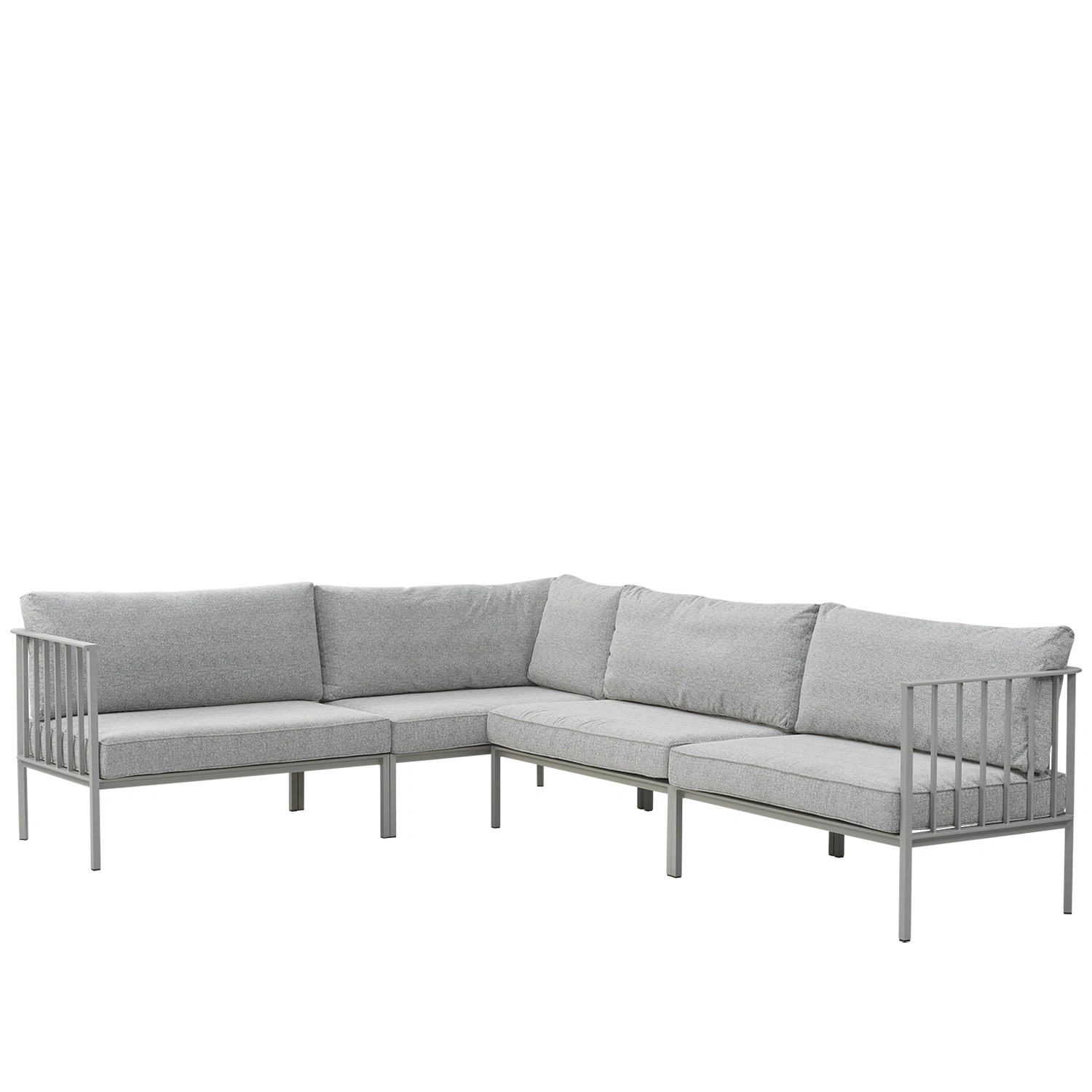 En renodlad, modern sofflösning med smart modulflexibilitet – med en fantastisk komfort. Alla delar levereras i en kartong för enkel hantering och kan staplas i varandra för te.x. smidig vinterförvaring. En robust aluminiumram bär upp generösa sitt- och ryggdynor, fyllda med syntetdun för en mjuk men stödjande känsla. Designen i staketstil tillför karaktär, och mittenmodulen fungerar lika bra fristående som i kombination.
