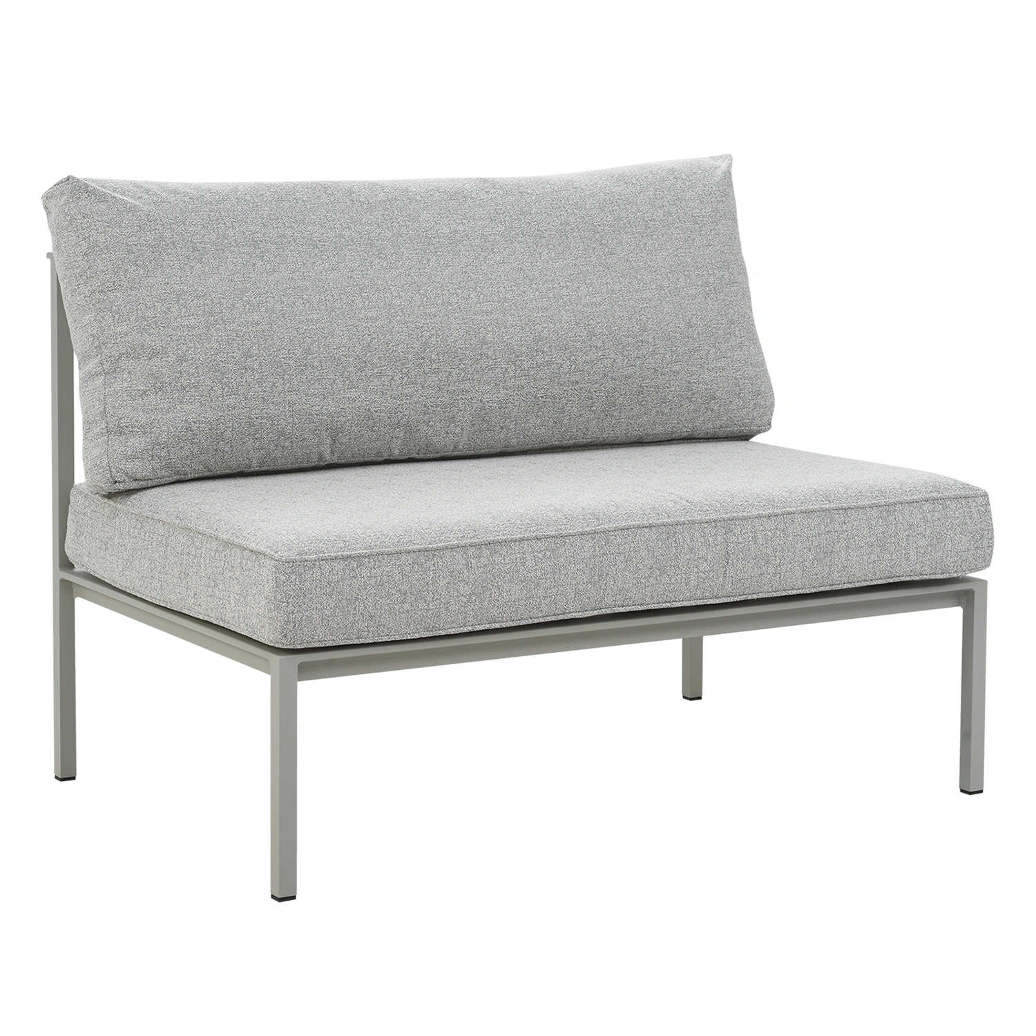 En renodlad, modern sofflösning med smart modulflexibilitet – med en fantastisk komfort. Alla delar levereras i en kartong för enkel hantering och kan staplas i varandra för te.x. smidig vinterförvaring. En robust aluminiumram bär upp generösa sitt- och ryggdynor, fyllda med syntetdun för en mjuk men stödjande känsla. Designen i staketstil tillför karaktär, och mittenmodulen fungerar lika bra fristående som i kombination.