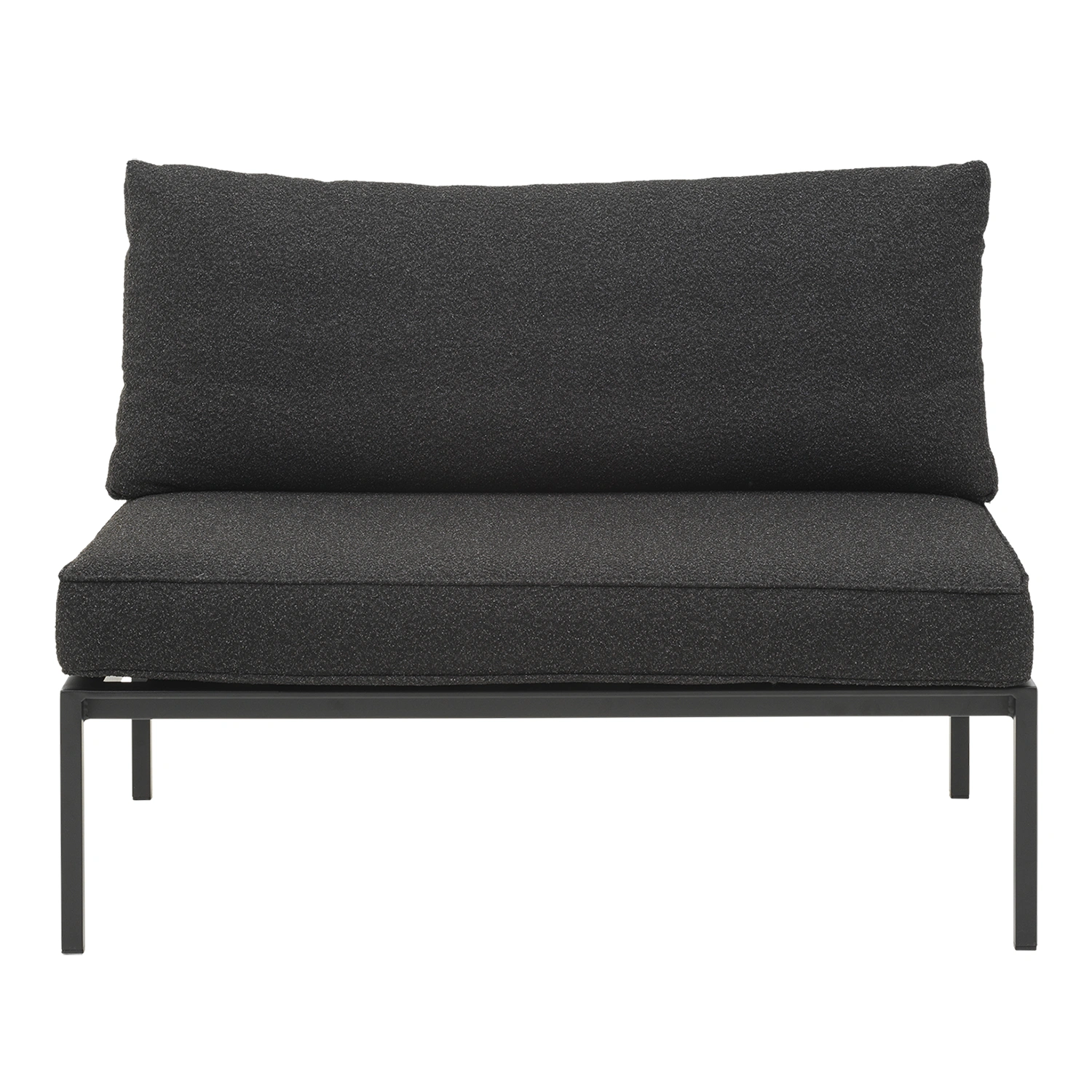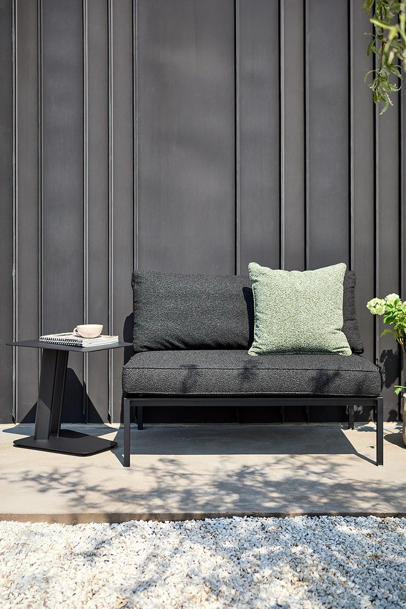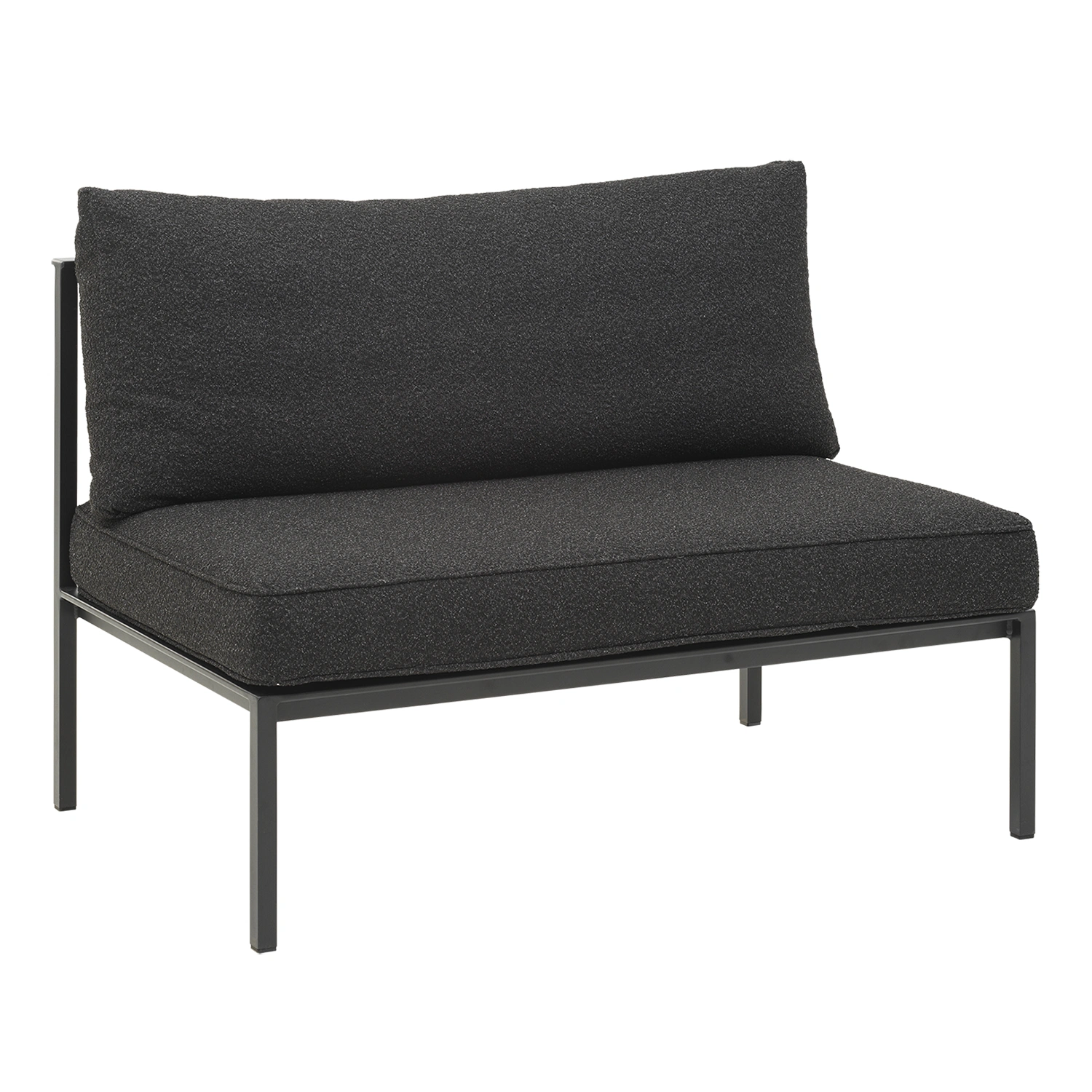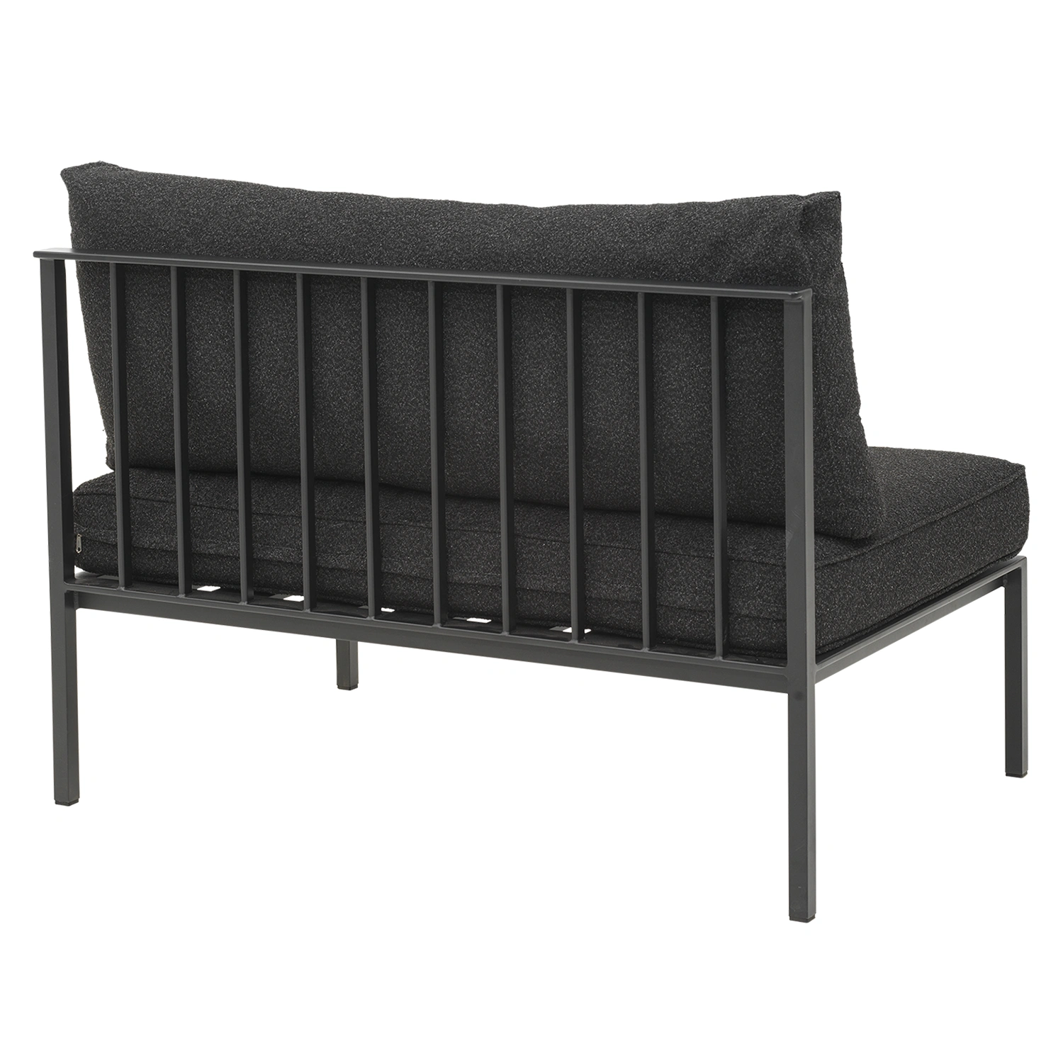 En renodlad, modern sofflösning med smart modulflexibilitet – med en fantastisk komfort. Alla delar levereras i en kartong för enkel hantering och kan staplas i varandra för te.x. smidig vinterförvaring. En robust aluminiumram bär upp generösa sitt- och ryggdynor, fyllda med syntetdun för en mjuk men stödjande känsla. Designen i staketstil tillför karaktär, och mittenmodulen fungerar lika bra fristående som i kombination.