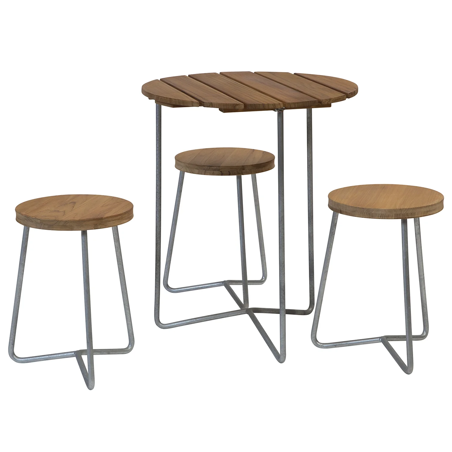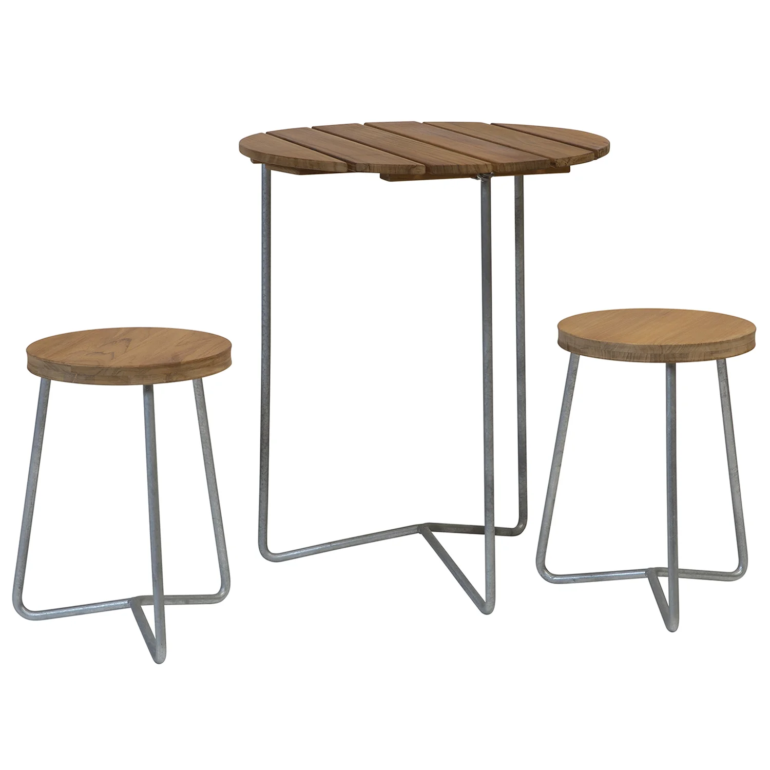 Cafégrupp med två V1-pallar och ett 6B bord med bordsskiva i teak. Önskas fler pallar går det bra att lägga till.