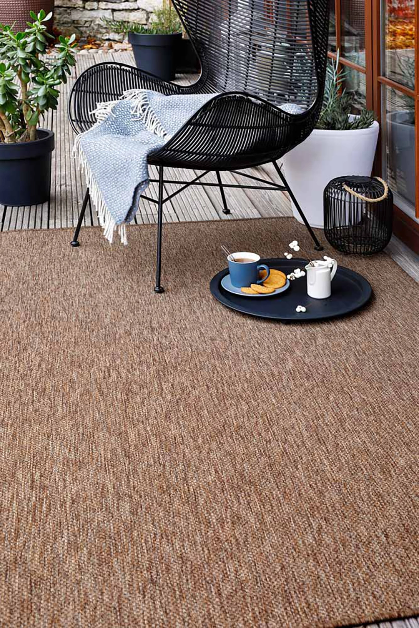 Vagabond är en flatvävd indoor/outdoor matta med latexbaksida som gör den halkfri. Skapa en ombonad känsla och låt din terrass få ett lyft med en snygg matta som dessutom är slitstark och skön att gå på. Eller varför inte låta mattan lyfta upp ditt hem med sin tidlösa design. Mattan passar lika bra i vardagsrummet som under matbordet eller på terrassen.