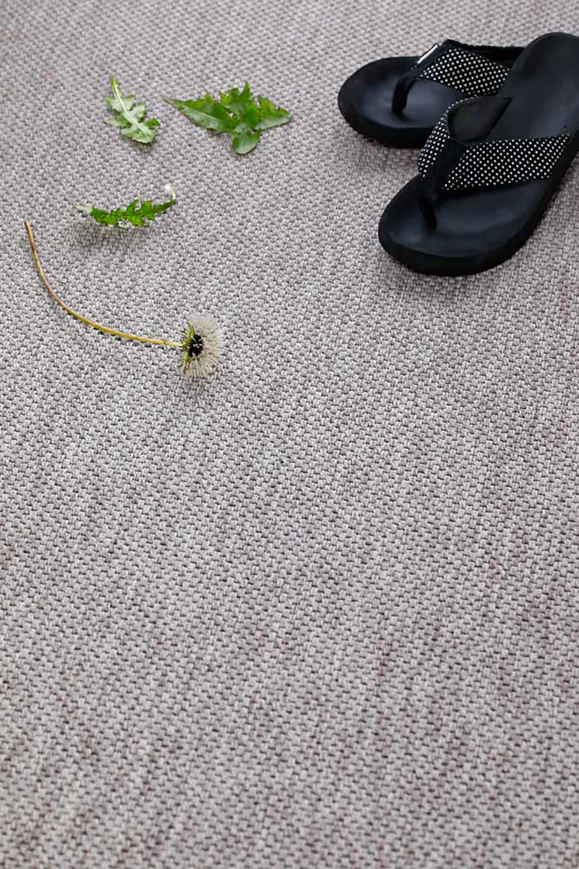 Vagabond är en flatvävd indoor/outdoor matta med latexbaksida som gör den halkfri. Skapa en ombonad känsla och låt din terrass få ett lyft med en snygg matta som dessutom är slitstark och skön att gå på. Eller varför inte låta mattan lyfta upp ditt hem med sin tidlösa design. Mattan passar lika bra i vardagsrummet som under matbordet eller på terrassen.