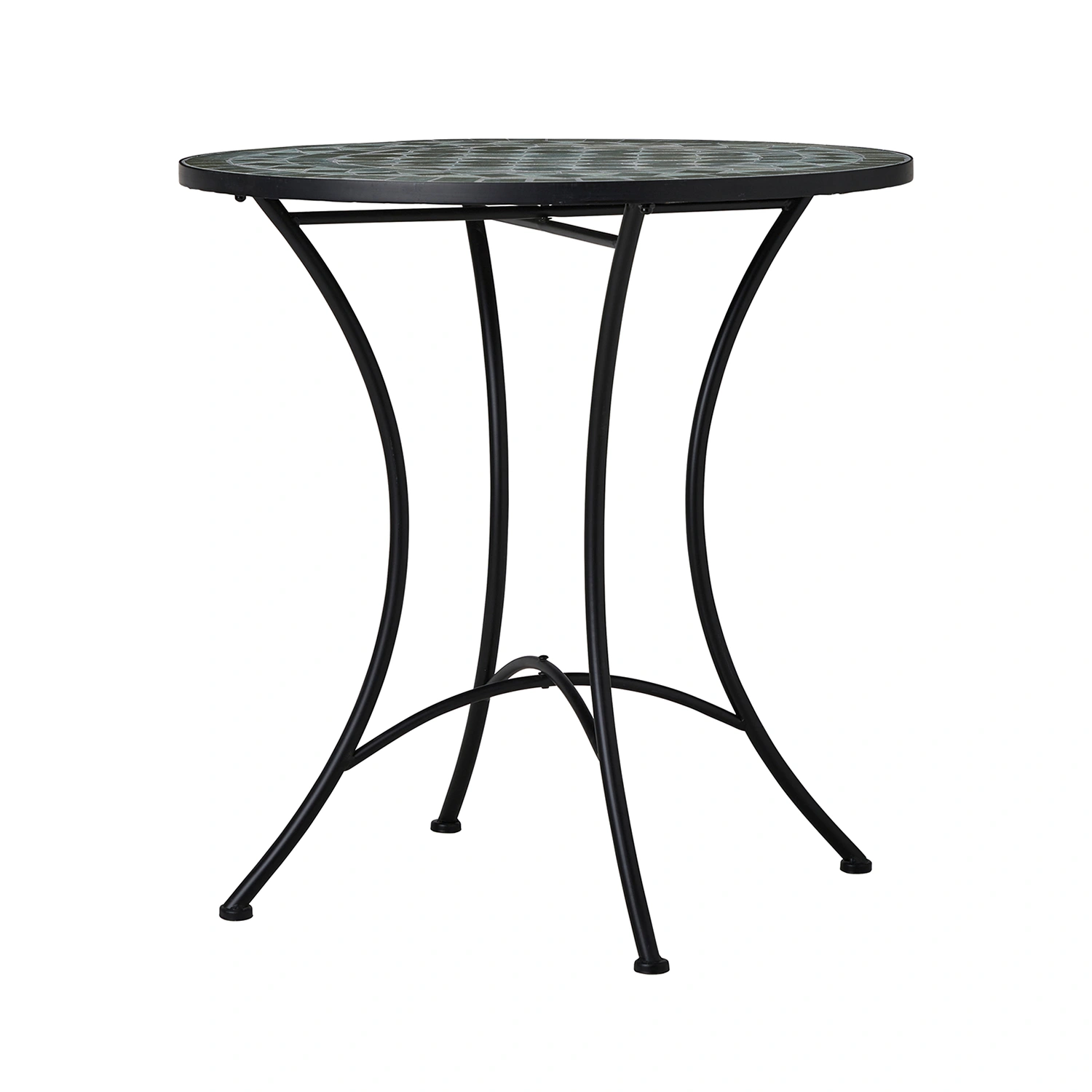 Venice är ett vackert bord från Wikholm form med en bordsskiva i mosaik och ett stativ i svart järn. Här visas bordet med en bordsskiva i ett brunmelerat och blått mönster med stativ i svart.