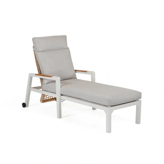 Verona-serien är tillverkad i pulverlackerad aluminium och vävd konstrotting – ett materialval som kombinerar hållbarhet med visuell värme. Aluminiumet gör möblerna rostfria och tåliga mot väder och vind, medan konstrottingen ger en mjuk struktur med naturlig känsla.