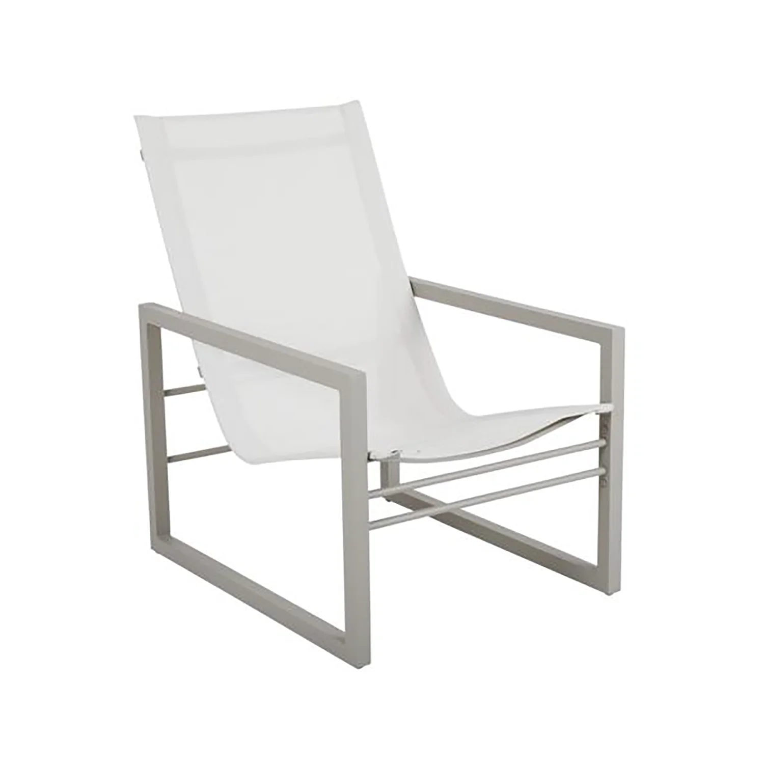 Vevi Loungefåtölj är med sin tidlösa design en modern klassiker, som passar alla typer av uteplatser. Finns i tre färger i aluminium; vit, svart, Khaki och även en version med stomme i teak.