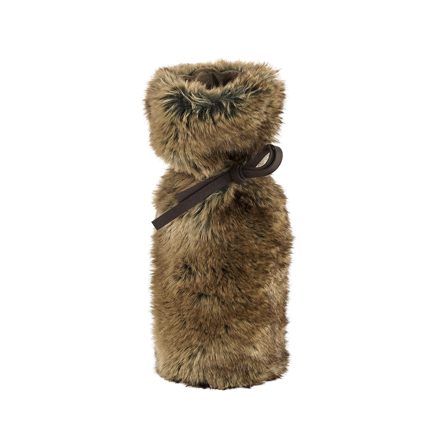 Vinpåse i mjuk pälsimitation. Dragsko i läderimitation upptill. Passar lika bra på det dukade bordet eller som en vacker gå bort present.