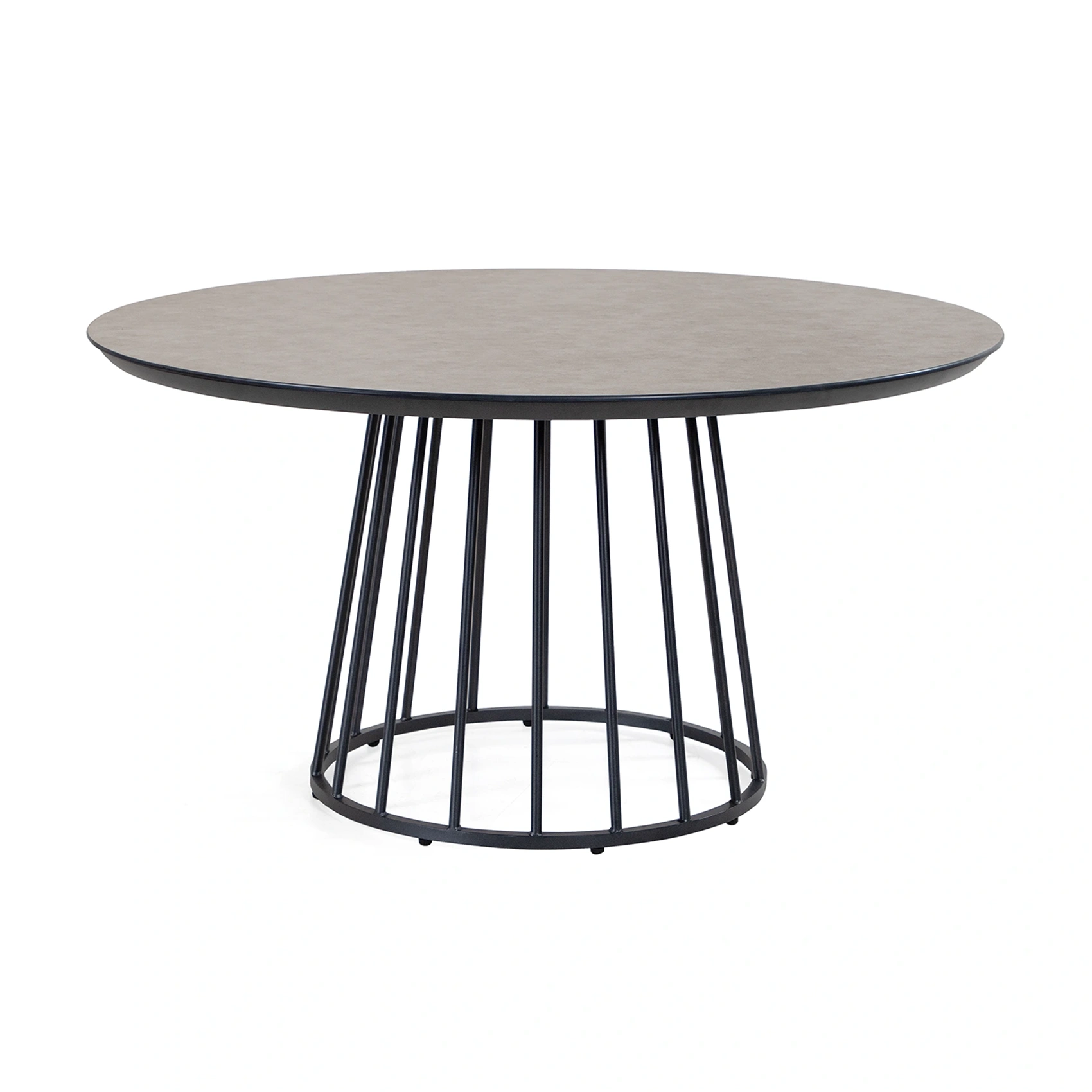Viola är ett runt matbord från Atleve med en stilren och retroinspirerad form. Bordet är tillverkat i pulverlackerad aluminium i färgen antracit, med en bordsskiva i glas med 3D-tryckt stenmönster i mörkgrått. Den konformade foten skapar gott om benutrymme. Bordet har plats för upp till sex karmstolar och passar bra till bland annat stolarna Viola, Vista och Tea Time.