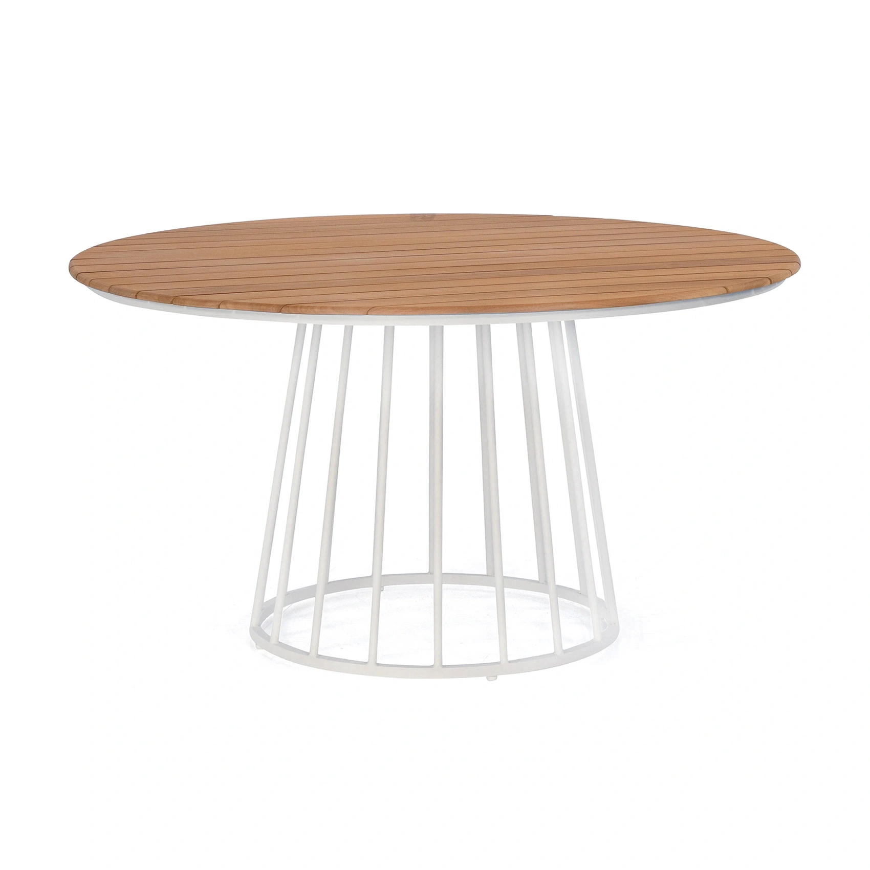 Viola är ett runt matbord från Atleve med en stilren och retroinspirerad form. Bordet är tillverkat i pulverlackerad aluminium i färgen cream, med en bordsskiva i teak som tillför värme och naturlig karaktär. Den konformade foten ger bordet ett lätt och balanserat uttryck, samtidigt som den skapar gott om benutrymme. Bordets stativ är utformad i samma formspråk som Viola-stolen, vilket gör det till ett harmoniskt val för dig som vill skapa en enhetlig utemiljö. Bordet har plats för upp till sex karmstolar och passar bra till bland annat stolarna Viola, Olivia och Vista.