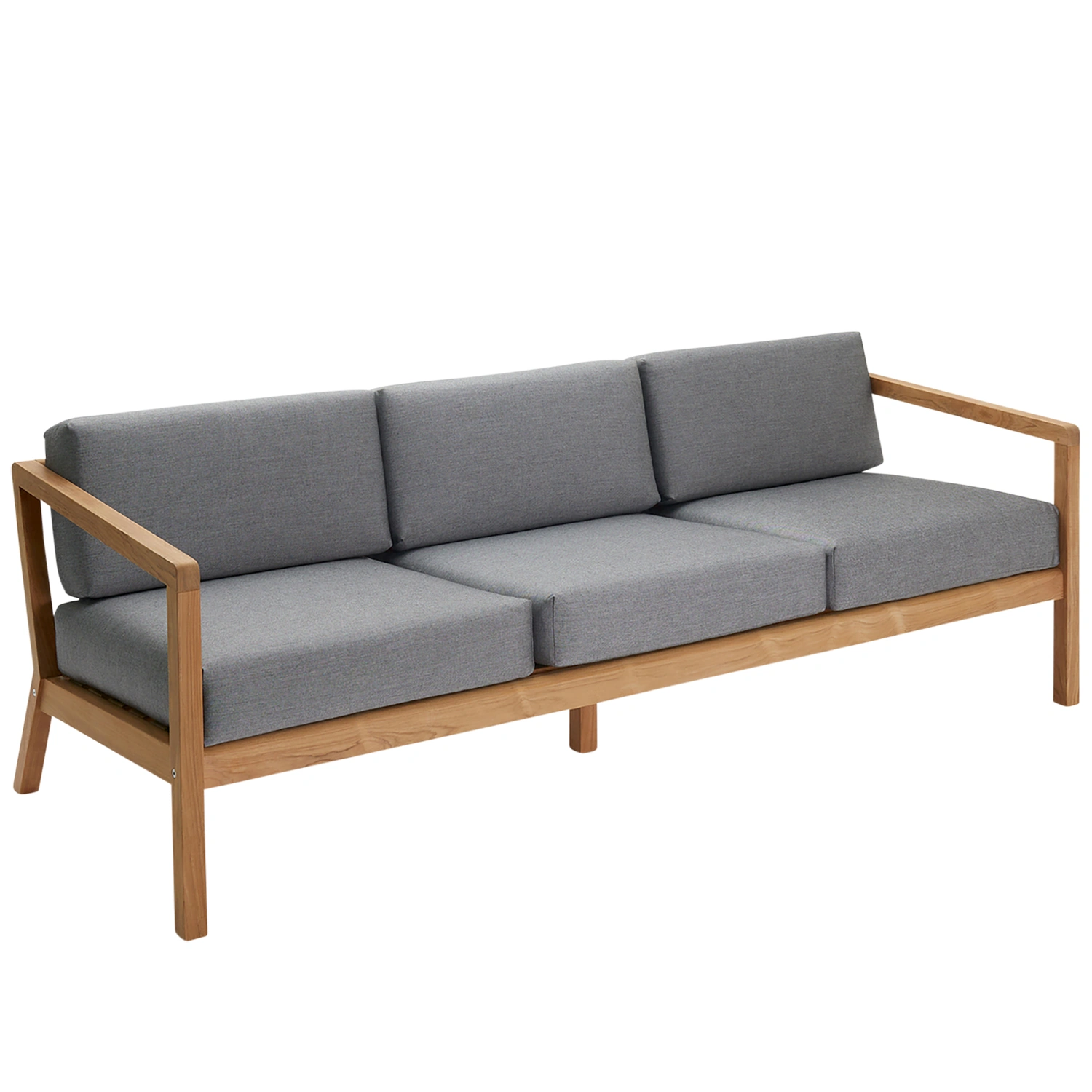 De rena linjerna i Virkelysts 100% FSC-certifierade teakstomme skapar en tillfredsställande kontrast till de tjocka, mjuka och bekväma kuddarna. Perfekt för att njuta av bekväma timmar i soliga trädgårdar eller på terrasser. Den väderbeständiga klädseln förenar skönhet med motståndskraft och är Oeko-Tex®-certifierad och extremt färgäkta och ljusäkta samt vatten-, smuts- och mögelbeständig. Kudden torkar snabbt även efter ett kraftigt skyfall, eftersom skummet har en öppencellig struktur som släpper igenom vatten och luft.