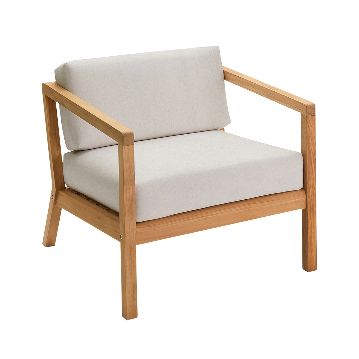 De rena linjerna i Virkelysts 100% FSC-certifierade teakstomme skapar en tillfredsställande kontrast till de tjocka, mjuka och bekväma kuddarna. Perfekt för att njuta av bekväma timmar i soliga trädgårdar eller på terrasser. Den väderbeständiga klädseln förenar skönhet med motståndskraft och är Oeko-Tex®-certifierad och extremt färgäkta och ljusäkta samt vatten-, smuts- och mögelbeständig. Kudden torkar snabbt även efter ett kraftigt skyfall, eftersom skummet har en öppencellig struktur som släpper igenom vatten och luft.