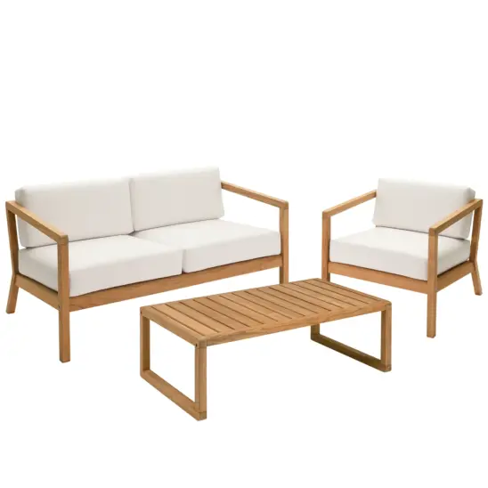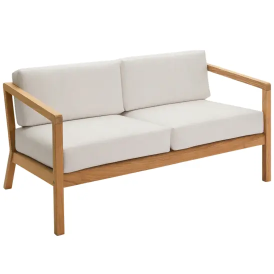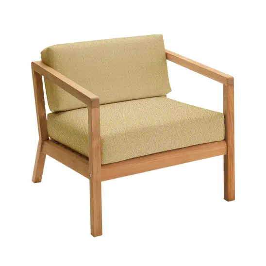 De rena linjerna i Virkelysts 100% FSC-certifierade teakstomme skapar en tillfredsställande kontrast till de tjocka, mjuka och bekväma kuddarna. Perfekt för att njuta av bekväma timmar i soliga trädgårdar eller på terrasser. Den väderbeständiga klädseln förenar skönhet med motståndskraft och är Oeko-Tex®-certifierad och extremt färgäkta och ljusäkta samt vatten-, smuts- och mögelbeständig. Kudden torkar snabbt även efter ett kraftigt skyfall, eftersom skummet har en öppencellig struktur som släpper igenom vatten och luft.