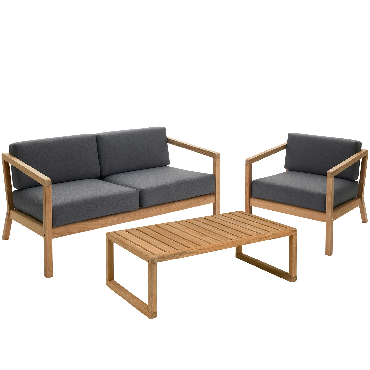 De rena linjerna i Virkelysts 100% FSC-certifierade teakstomme skapar en tillfredsställande kontrast till de tjocka, mjuka och bekväma kuddarna. Perfekt för att njuta av bekväma timmar i soliga trädgårdar eller på terrasser. Den väderbeständiga klädseln förenar skönhet med motståndskraft och är Oeko-Tex®-certifierad och extremt färgäkta och ljusäkta samt vatten-, smuts- och mögelbeständig. Kudden torkar snabbt även efter ett kraftigt skyfall, eftersom skummet har en öppencellig struktur som släpper igenom vatten och luft.