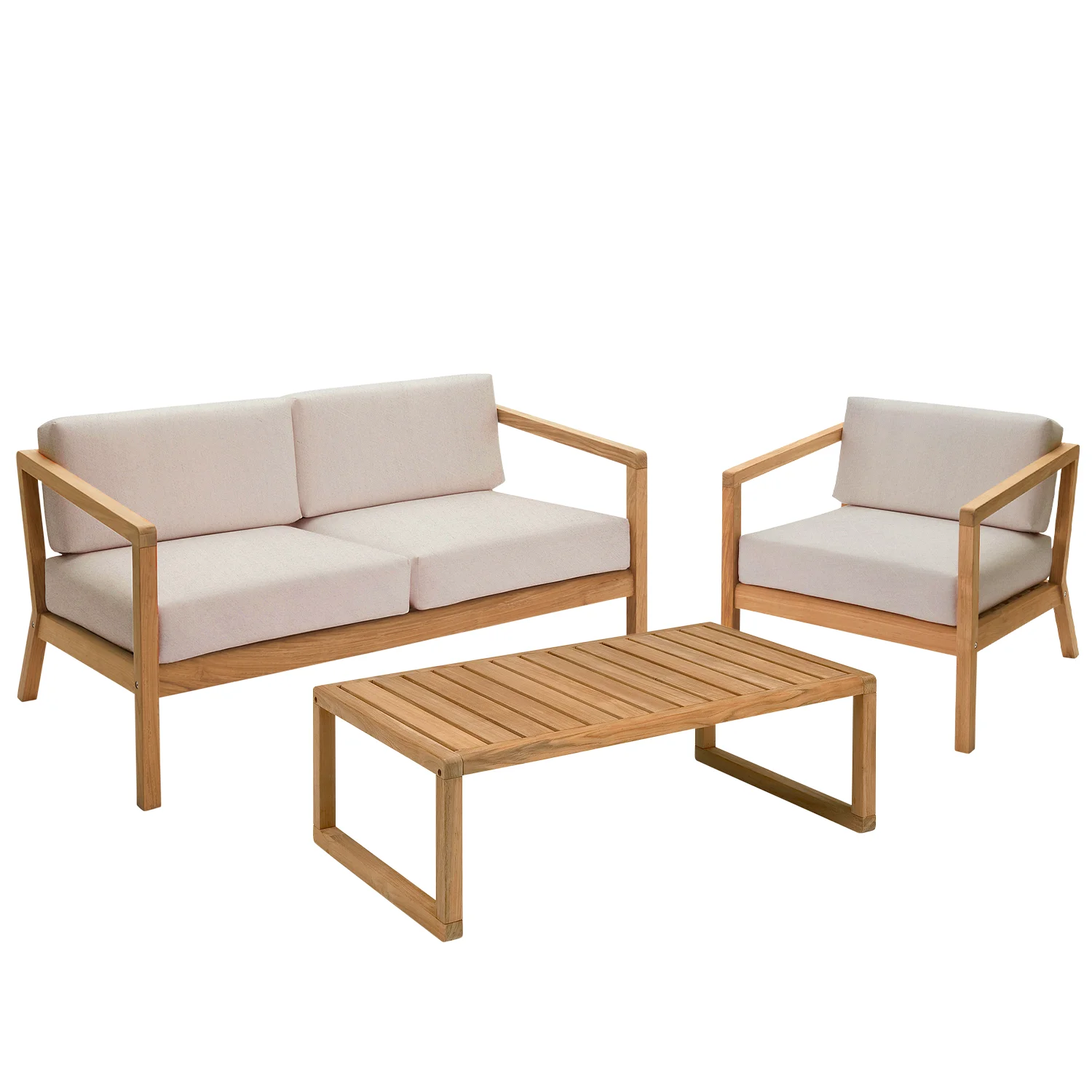 De rena linjerna i Virkelysts 100% FSC-certifierade teakstomme skapar en tillfredsställande kontrast till de tjocka, mjuka och bekväma kuddarna. Perfekt för att njuta av bekväma timmar i soliga trädgårdar eller på terrasser. Den väderbeständiga klädseln förenar skönhet med motståndskraft och är Oeko-Tex®-certifierad och extremt färgäkta och ljusäkta samt vatten-, smuts- och mögelbeständig. Kudden torkar snabbt även efter ett kraftigt skyfall, eftersom skummet har en öppencellig struktur som släpper igenom vatten och luft.