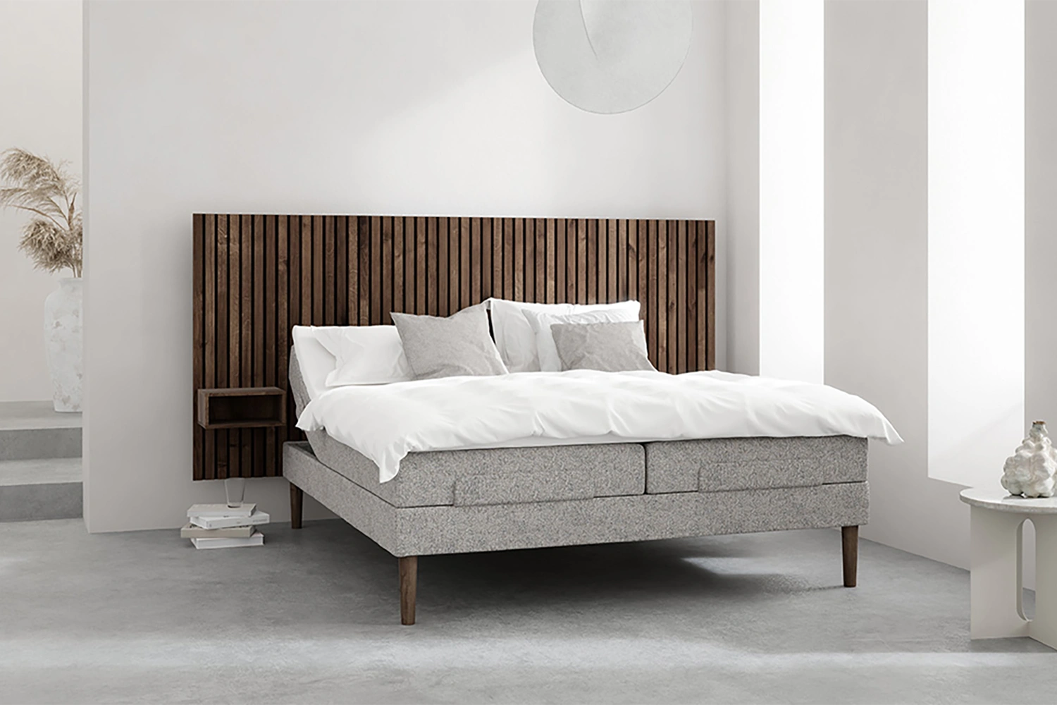 Wonderland WOOD huvudgavel är en modern gavel med trälameller i ljus eller mörk ek.